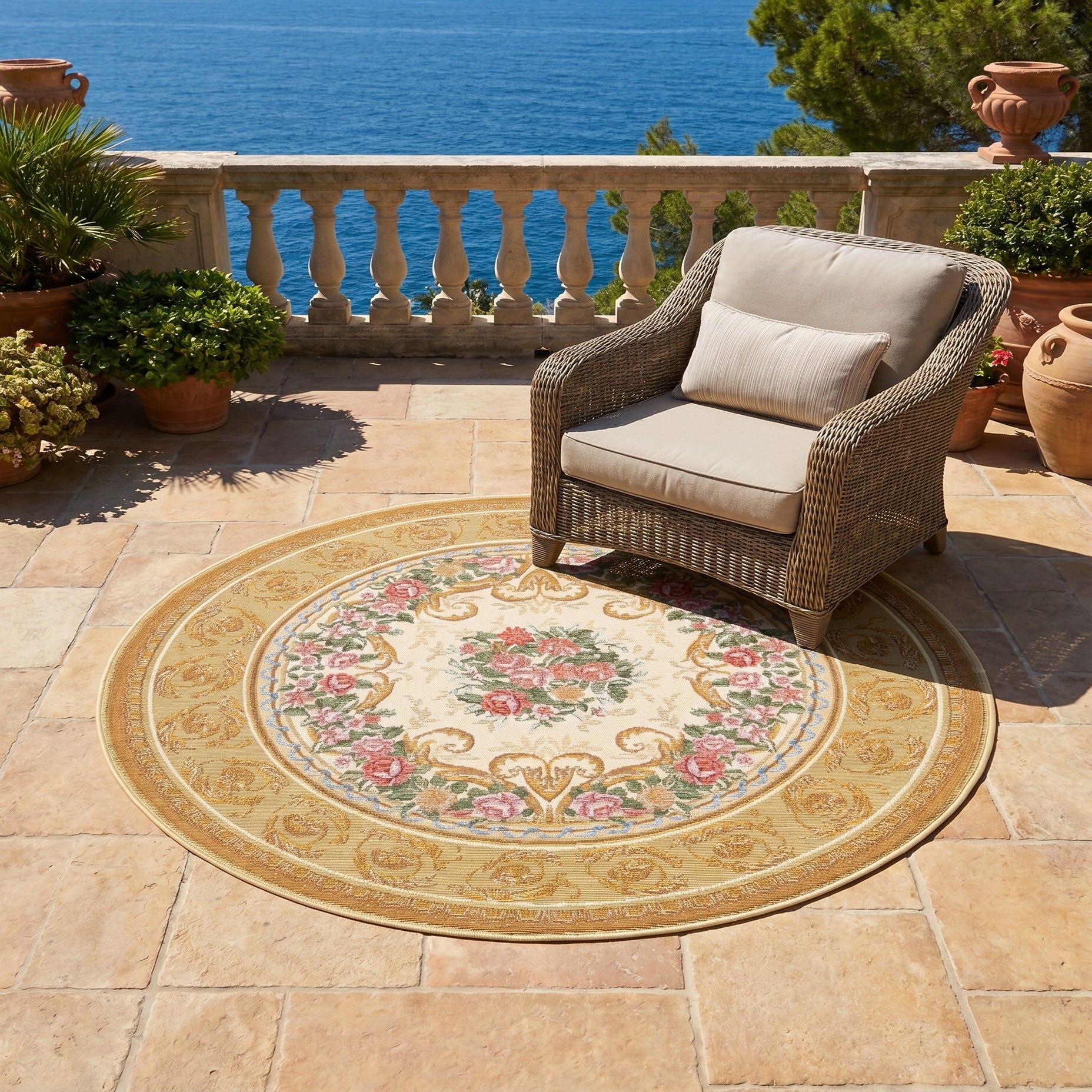 4' x 4' Easy-Clean Traditional Indoor / Outdoor Round Rug