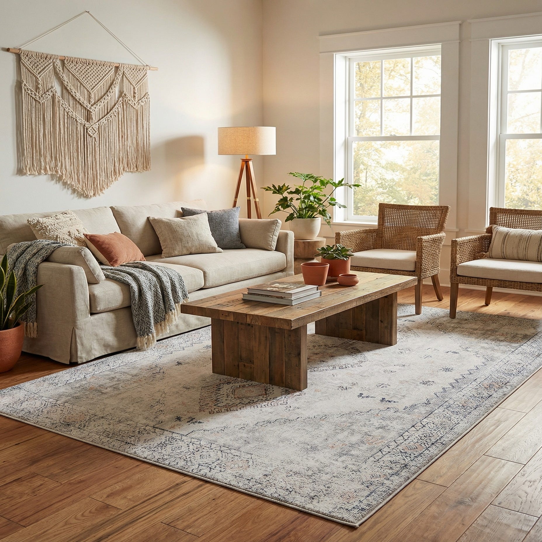 Primary color is Ivory and Beige. Colors in this rug include: Ivory and Beige, Black, Ivory, Gold, Gray.