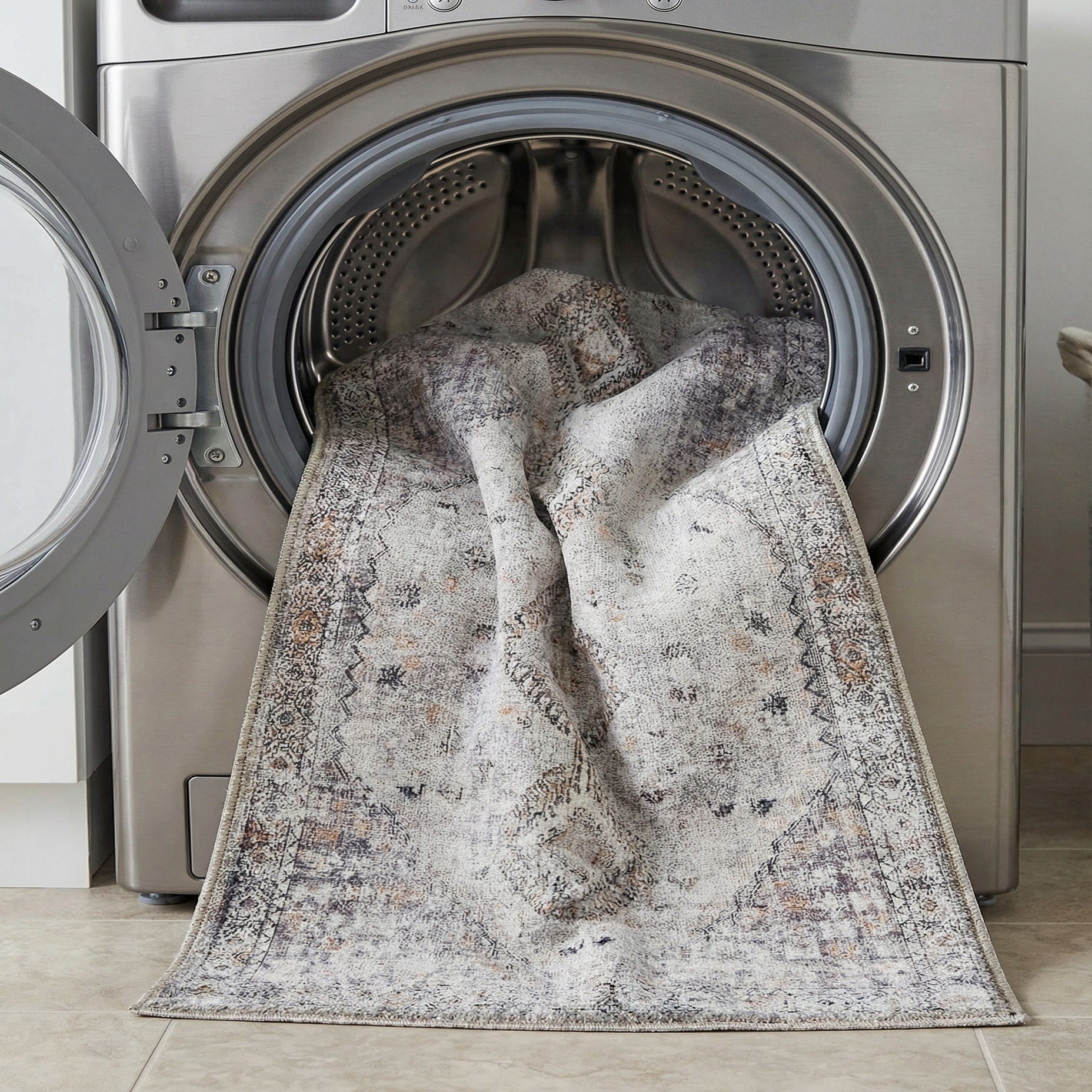 Primary color is Ivory and Beige. Colors in this rug include: Ivory and Beige, Black, Gold, Gray.