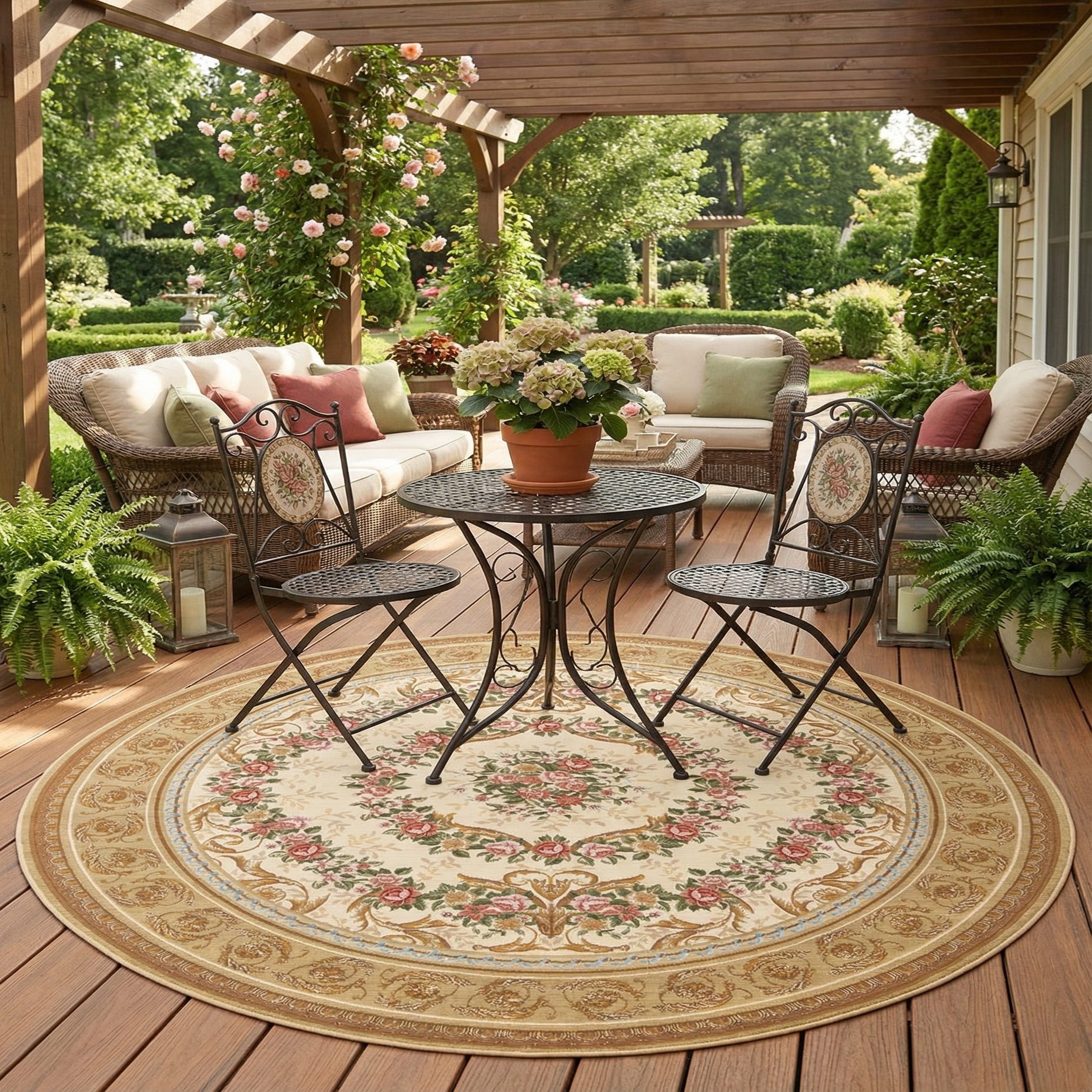 Primary image 7' 10 x 7' 10  Washable Traditional Indoor / Outdoor Round Rug