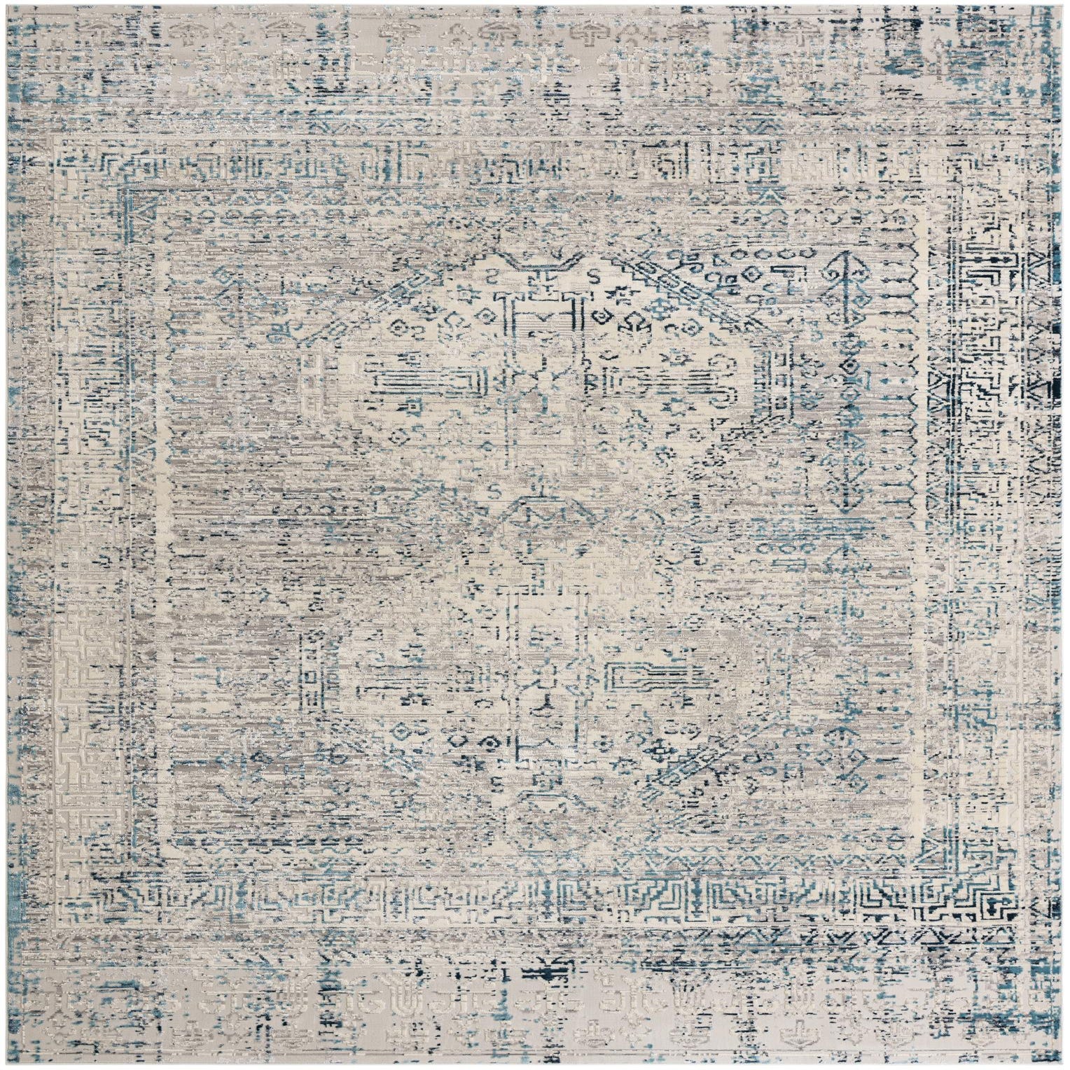 Primary color is Ivory and Blue. Colors in this rug include: Ivory and Blue, Gray.