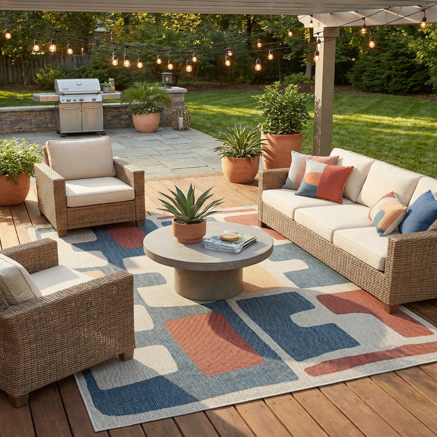 6' 1 x 9' Washable Baja Indoor / Outdoor Rug