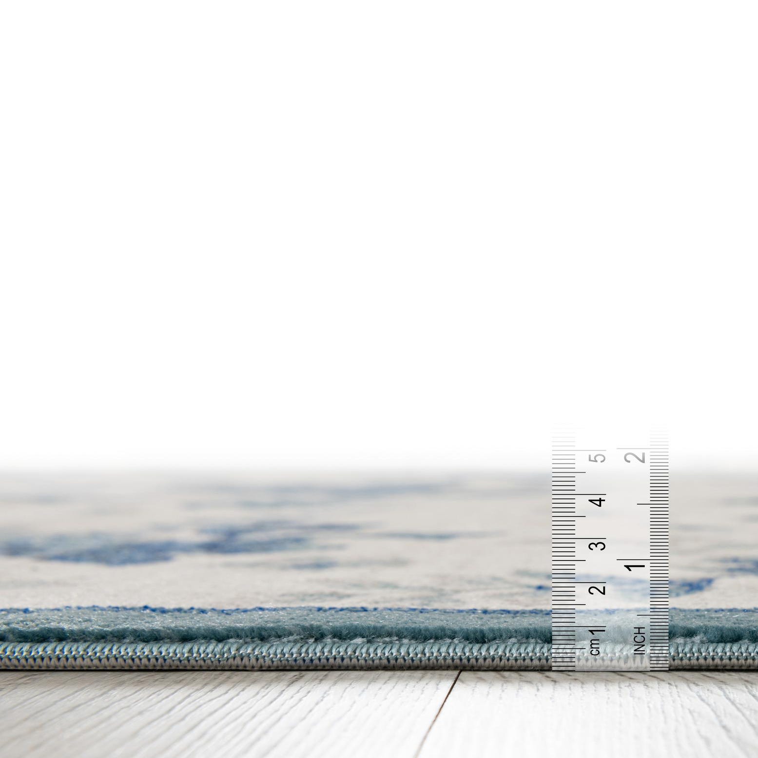 Primary color is Ivory and Blue. Colors in this rug include: Ivory and Blue, Gray.