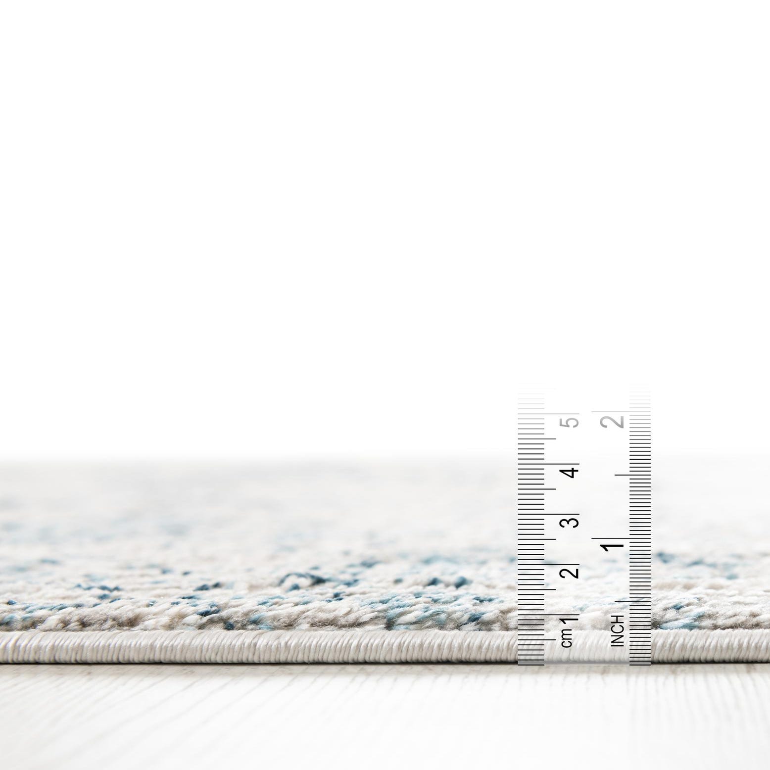 Primary color is Ivory and Blue. Colors in this rug include: Ivory and Blue, Gray.
