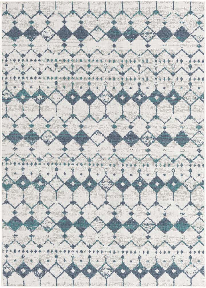 Primary color is Ivory and Blue. Colors in this rug include: Ivory and Blue, Blue, Gray, Green.