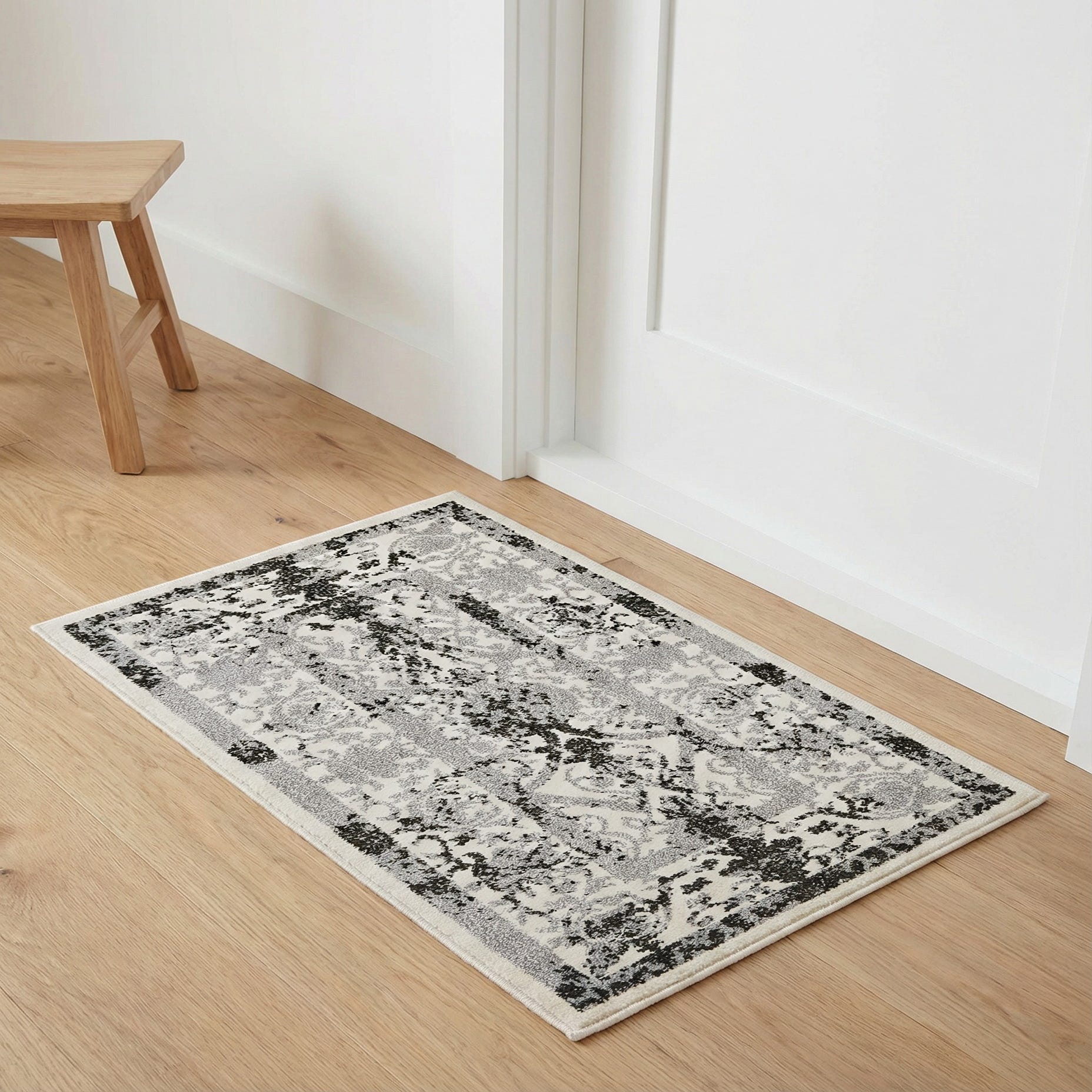 Primary color is Ivory and Gray. Colors in this rug include: Ivory and Gray, Black, Brown, Gray.