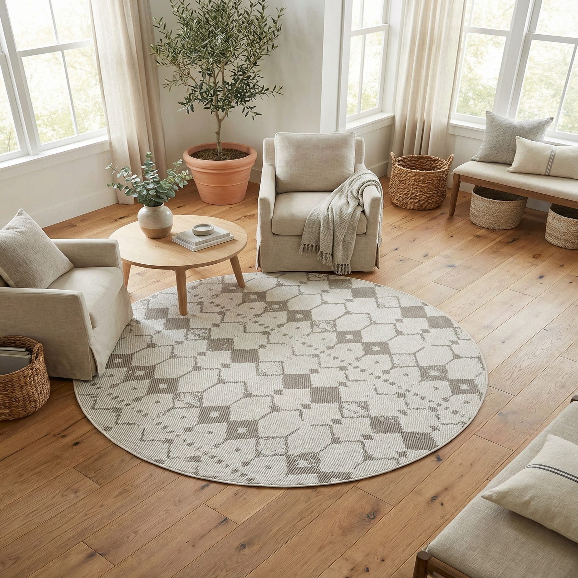4' x 4' Washable Trellis Indoor / Outdoor Round Rug