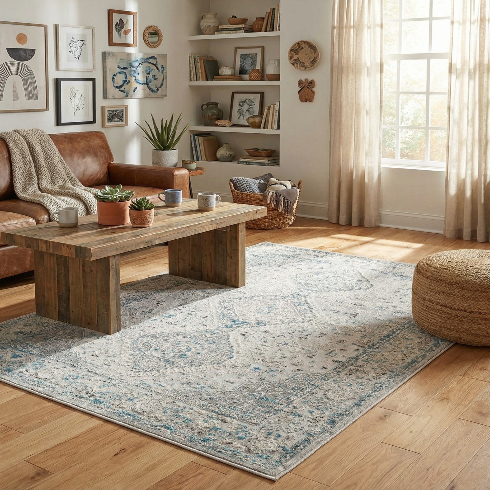 • Weathered gray wood coffee table