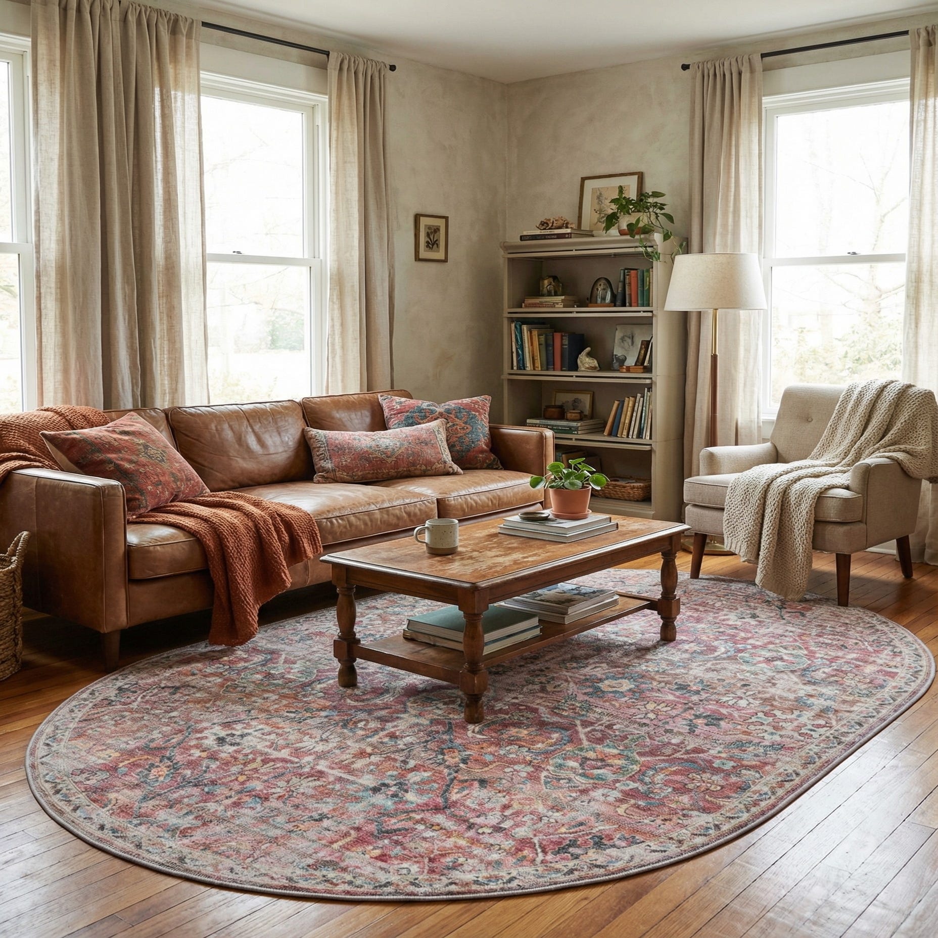 5' 3 x 8' Washable Nostalgia Oval Rug