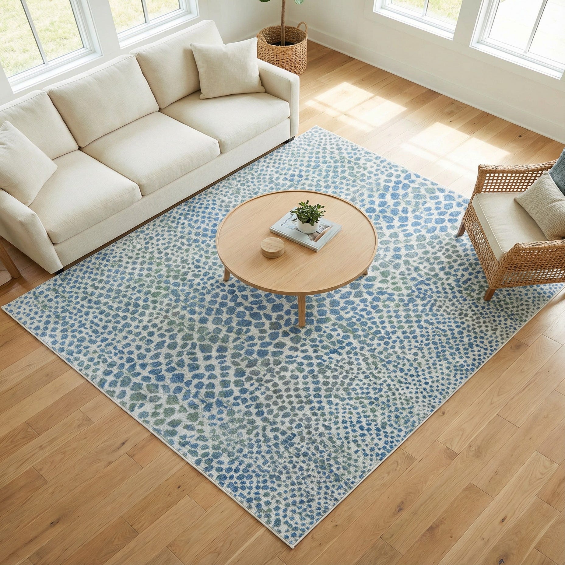 Primary color is Ivory Blue. Colors in this rug include: Ivory Blue, Gray.
