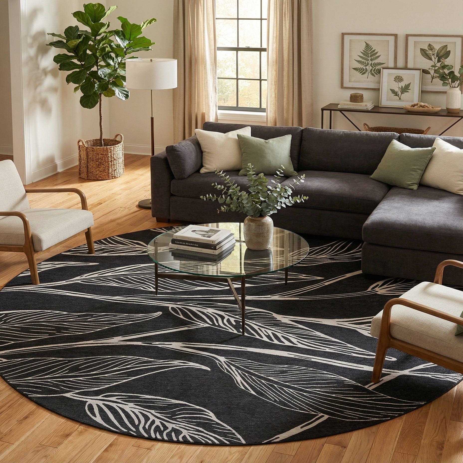 Detail image of 13' x 13'  Washable Botanical Indoor / Outdoor Round Rug