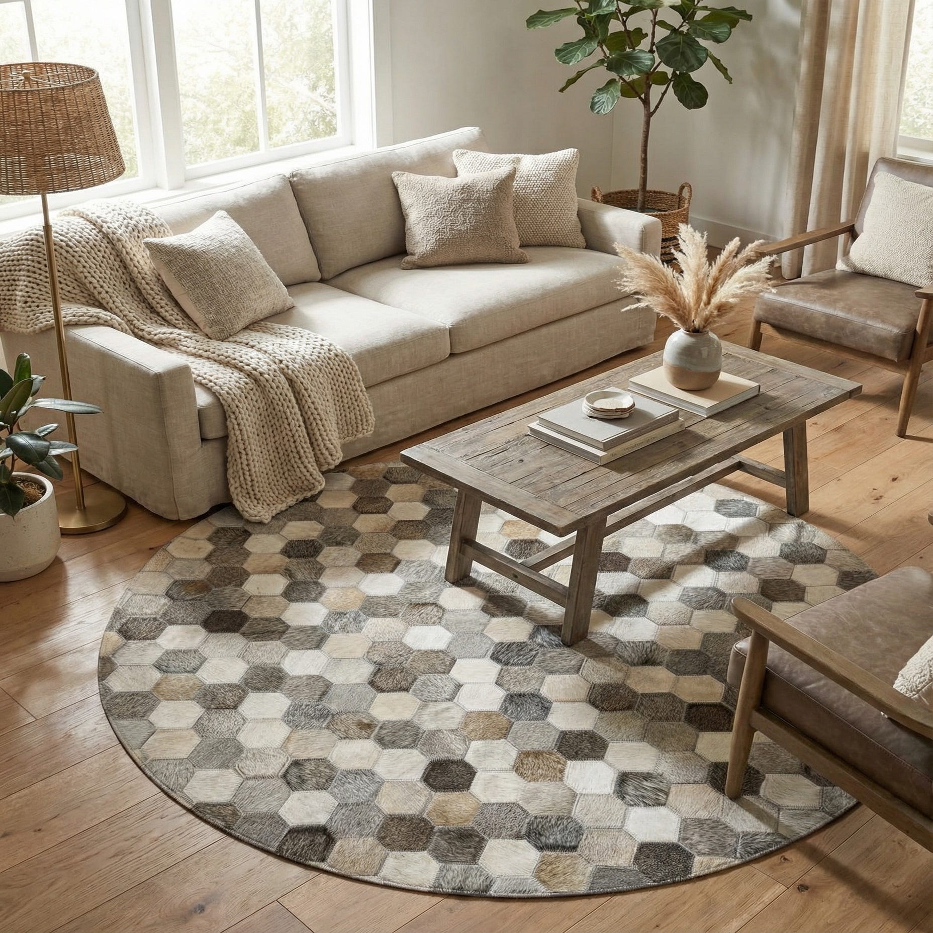 4' 1 x 4' 1 Cowhide Leather Round Rug