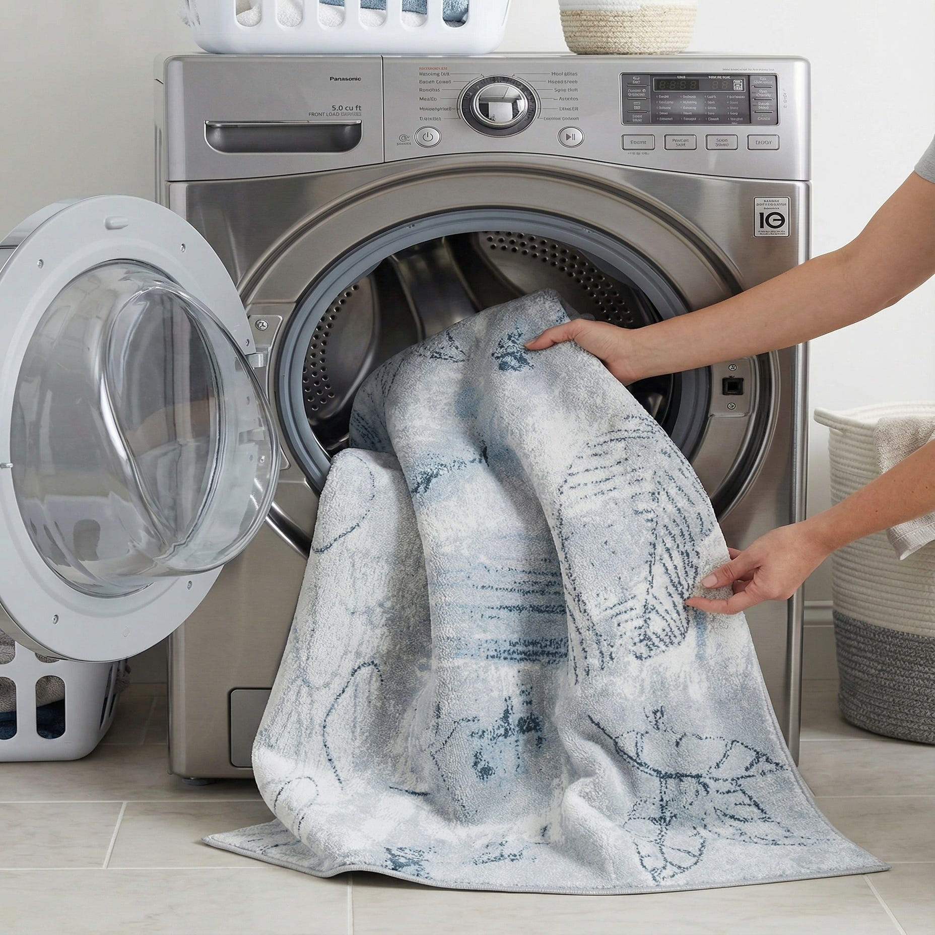 Primary color is Ivory Gray. Colors in this rug include: Ivory Gray, Blue, Light Blue.