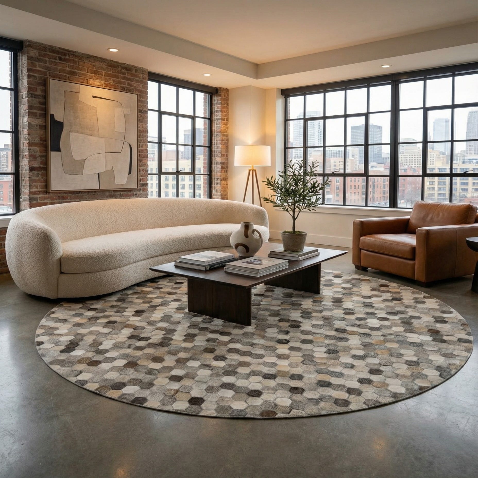 7' 10 x 7' 10 Cowhide Leather Round Rug