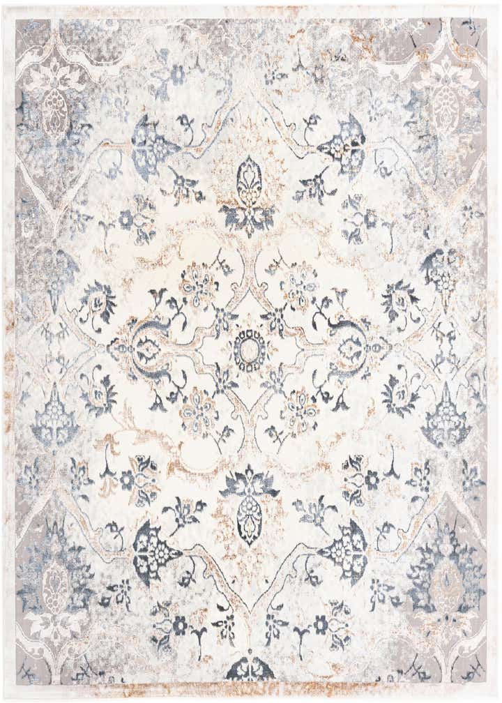 Primary color is Ivory Gray. Colors in this rug include: Ivory Gray, Black, Light Brown.