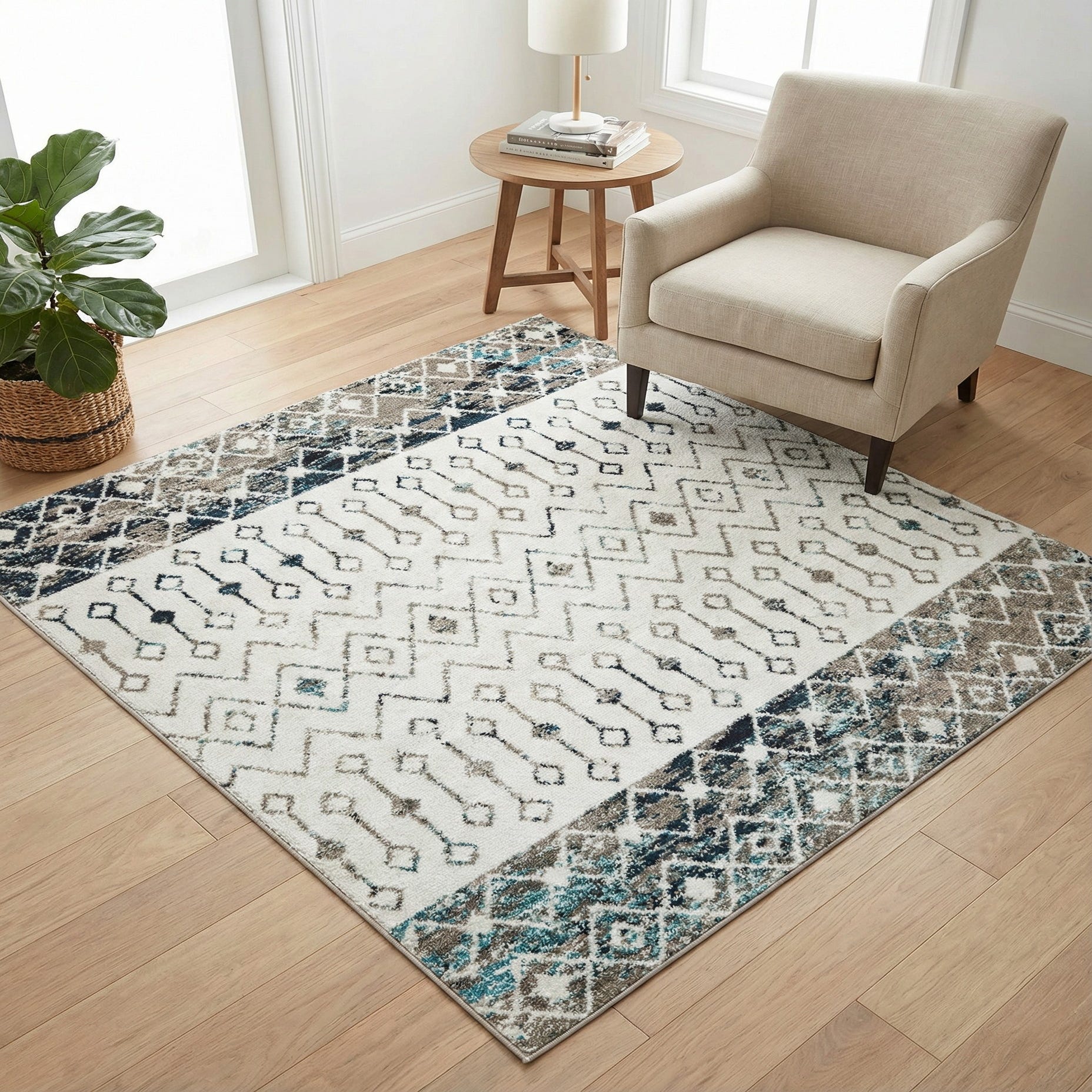 Primary color is Ivory Gray Blue. Colors in this rug include: Ivory Gray Blue, Beige.