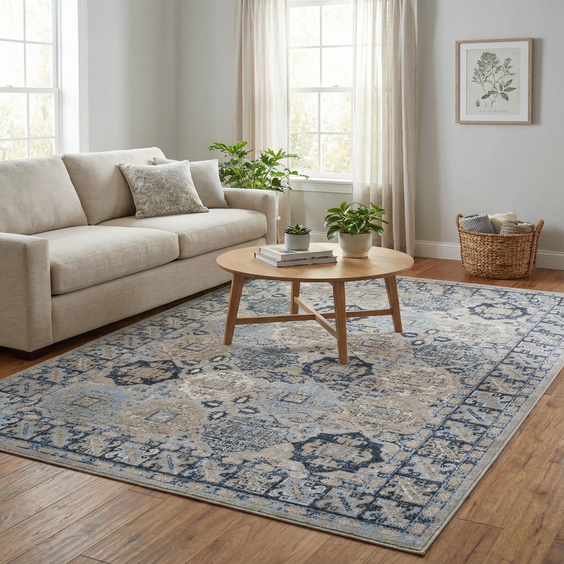 Primary color is Ivory Gray Blue. Colors in this rug include: Ivory Gray Blue, Beige.
