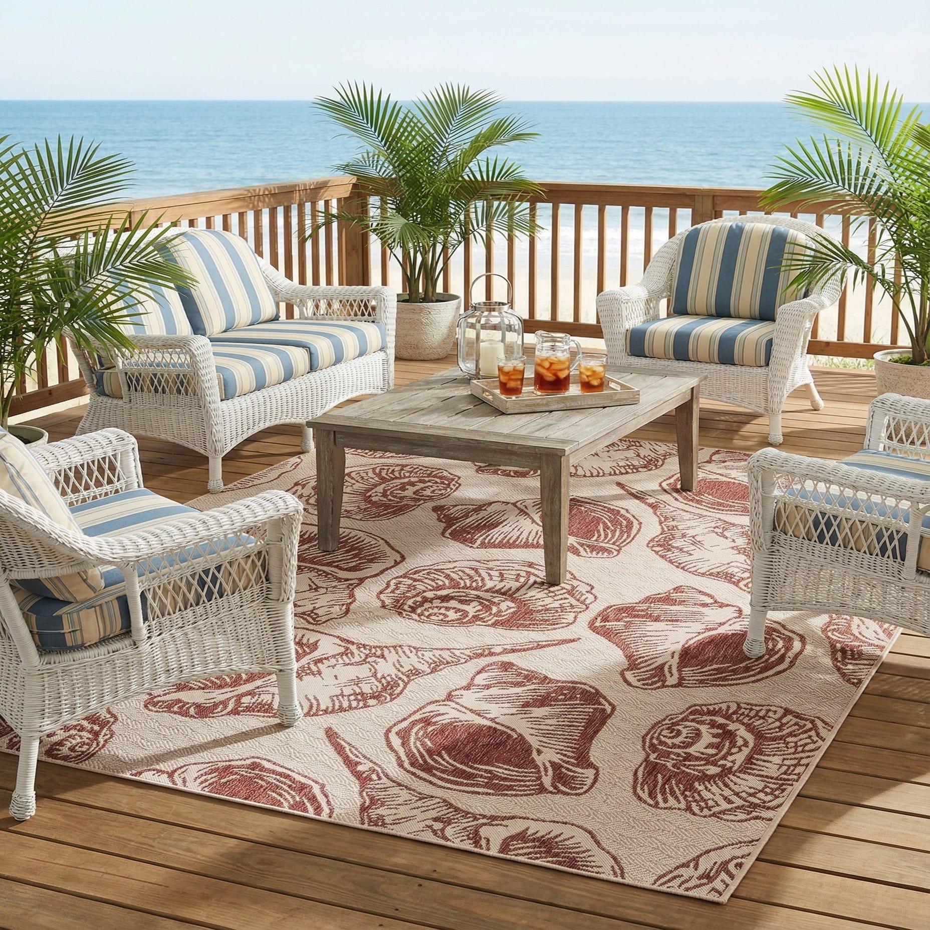 7' 10 x 10' Washable Coastal Indoor / Outdoor Rug