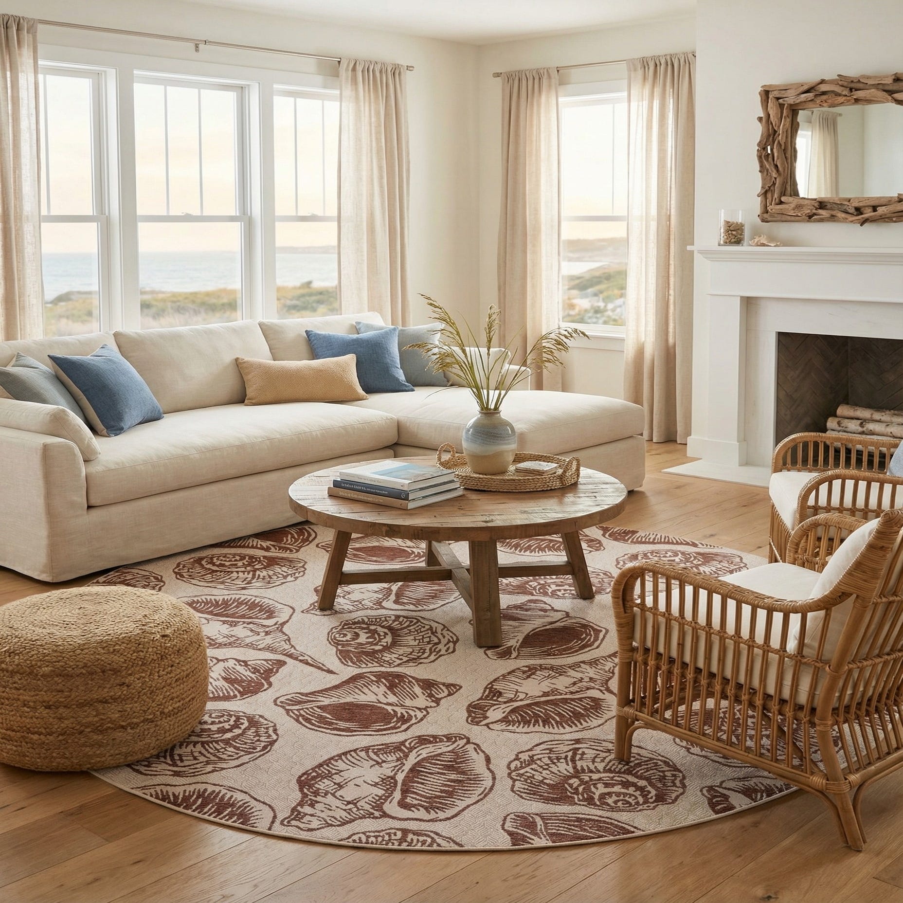 12' x 12' Washable Coastal Indoor / Outdoor Round Rug