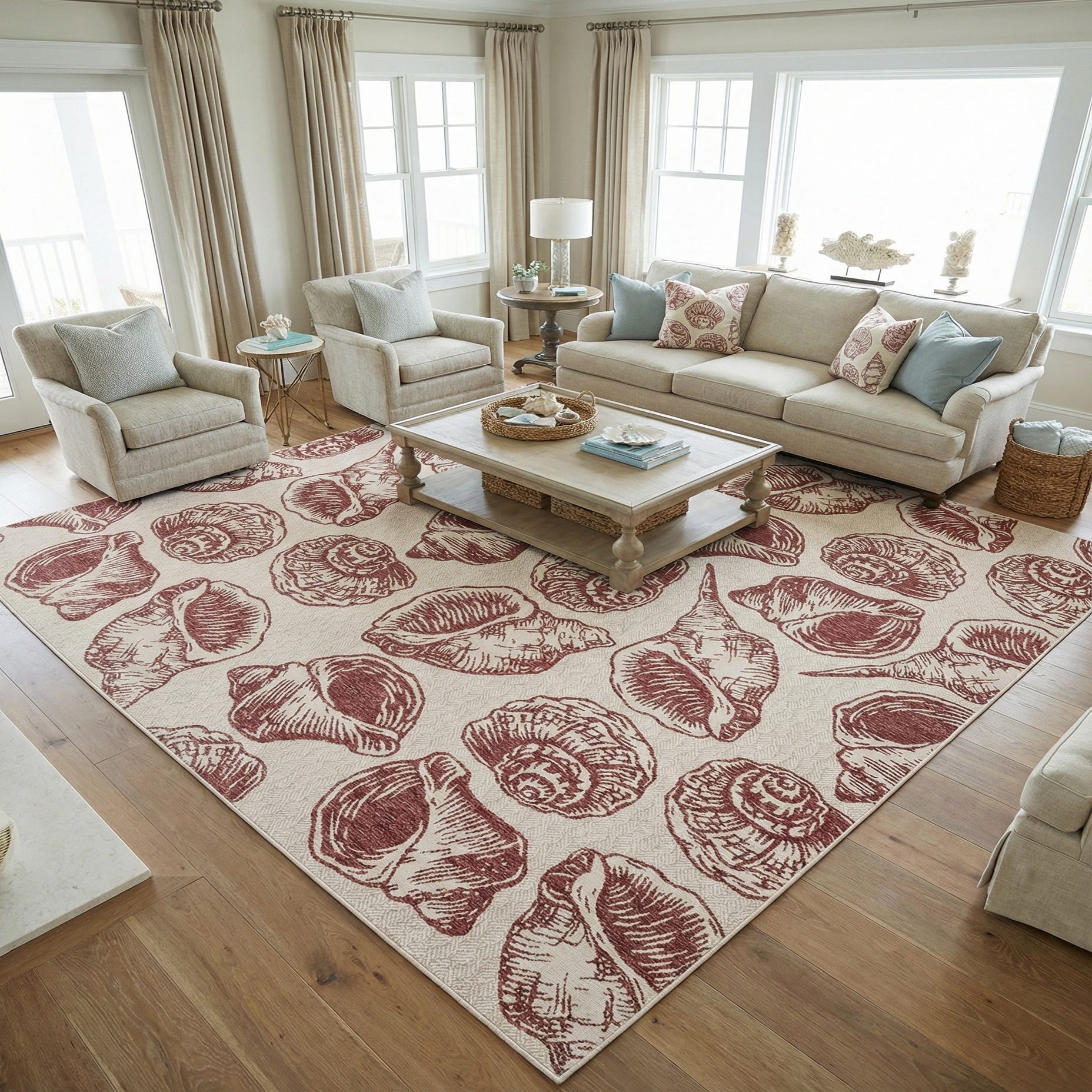 12' x 12' Washable Coastal Indoor / Outdoor Square Rug