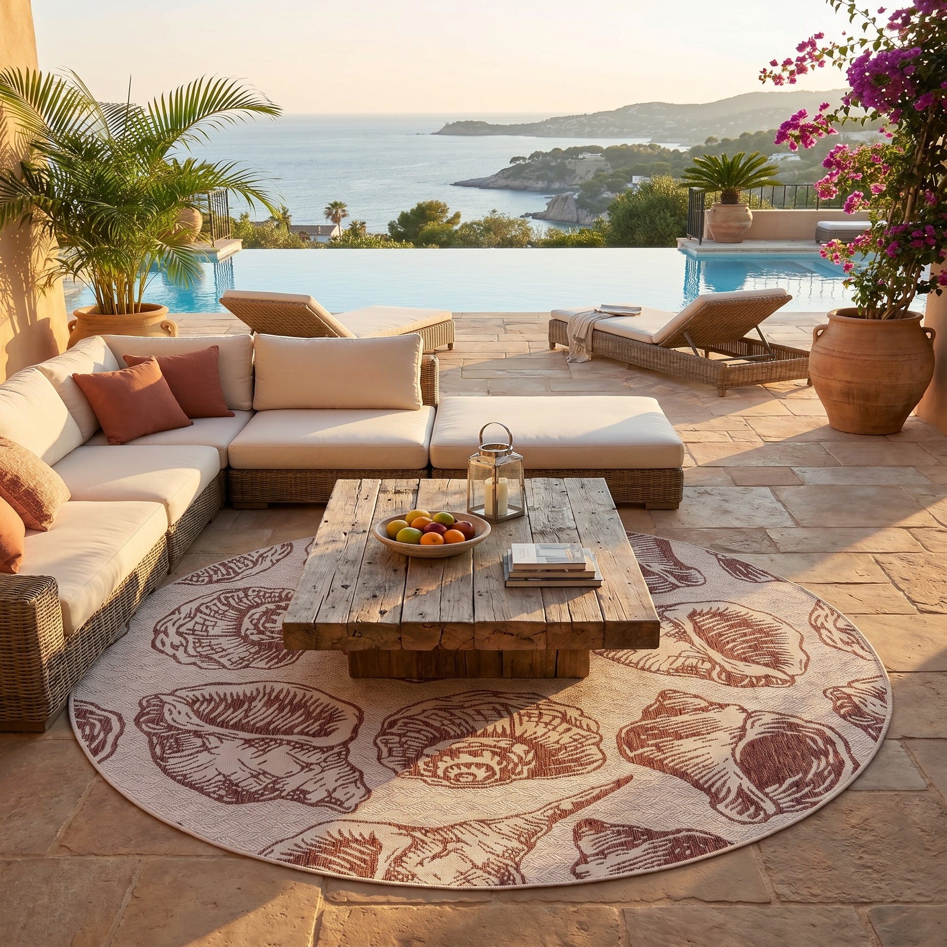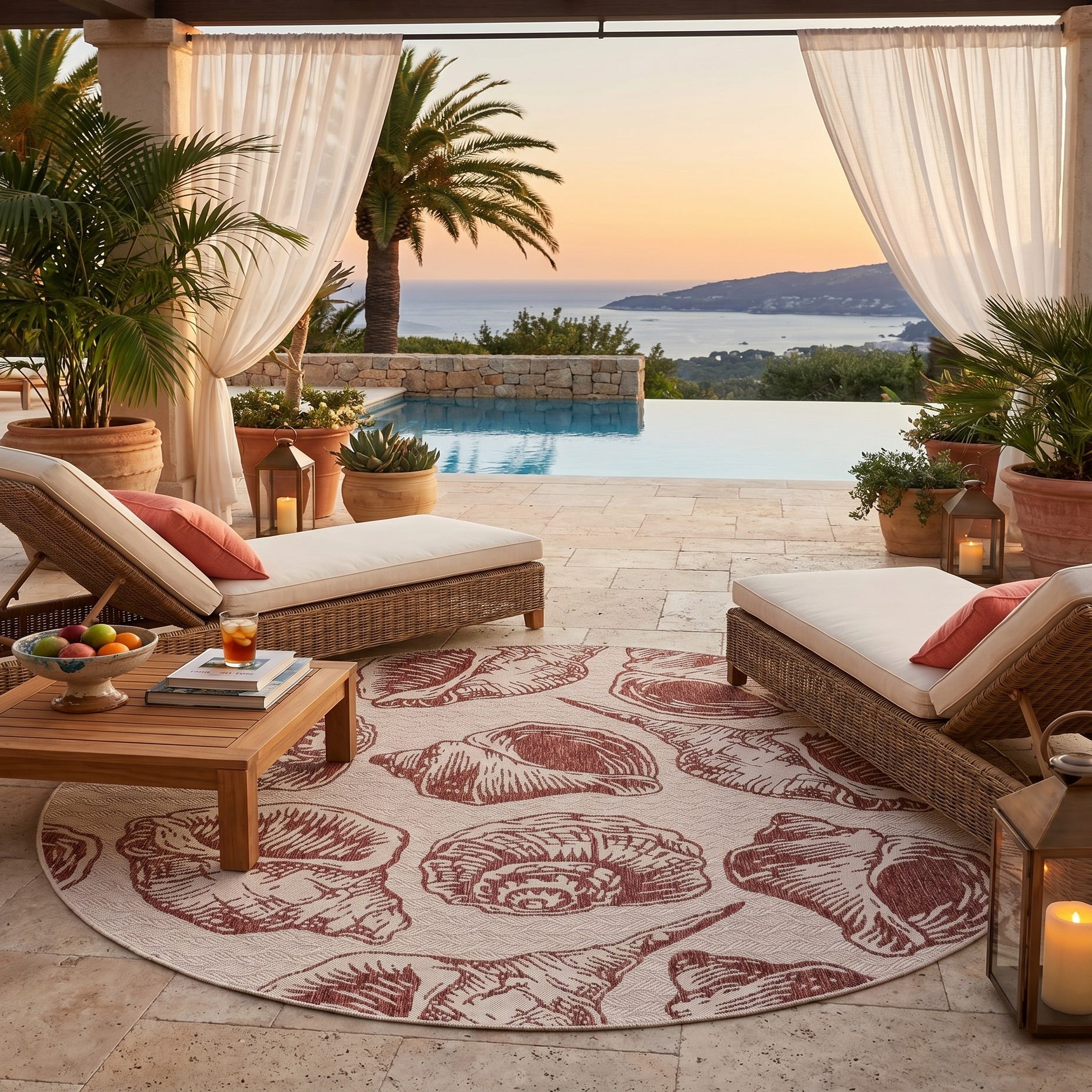 7' 10 x 7' 10 Easy-Clean Coastal Indoor / Outdoor Round Rug