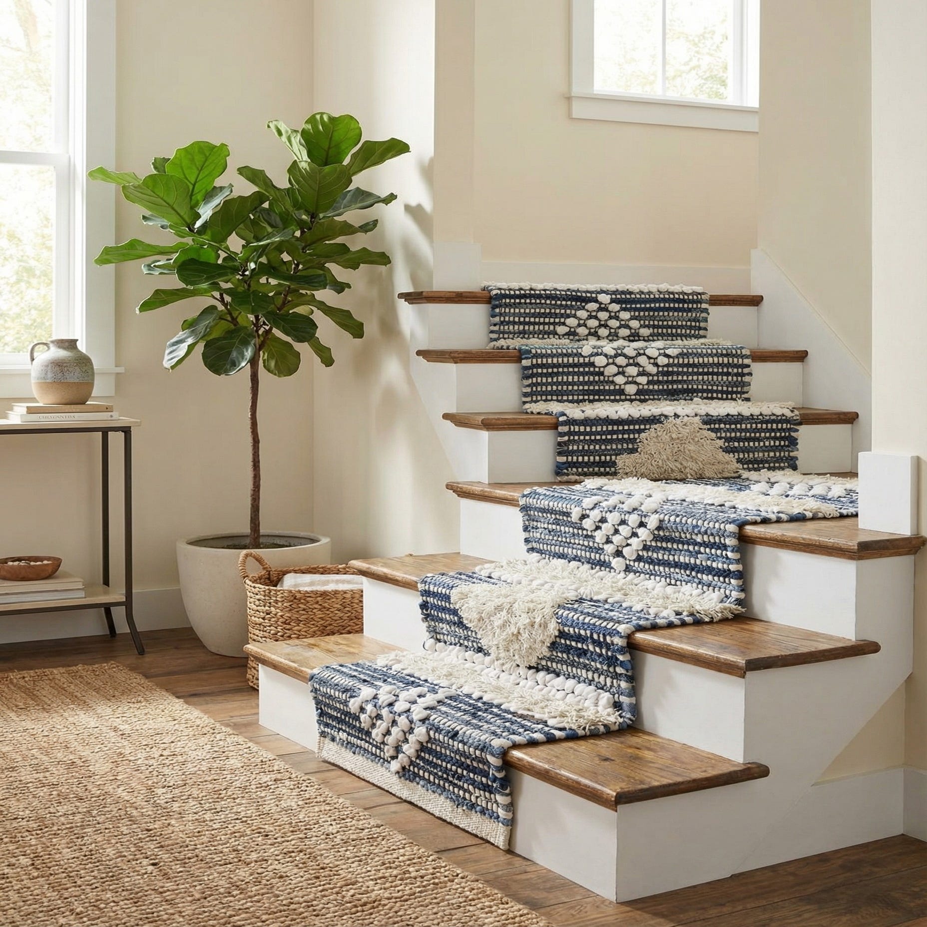 0' 9 x 2' 6 Hand Woven Cotton Chindi Stair Rug