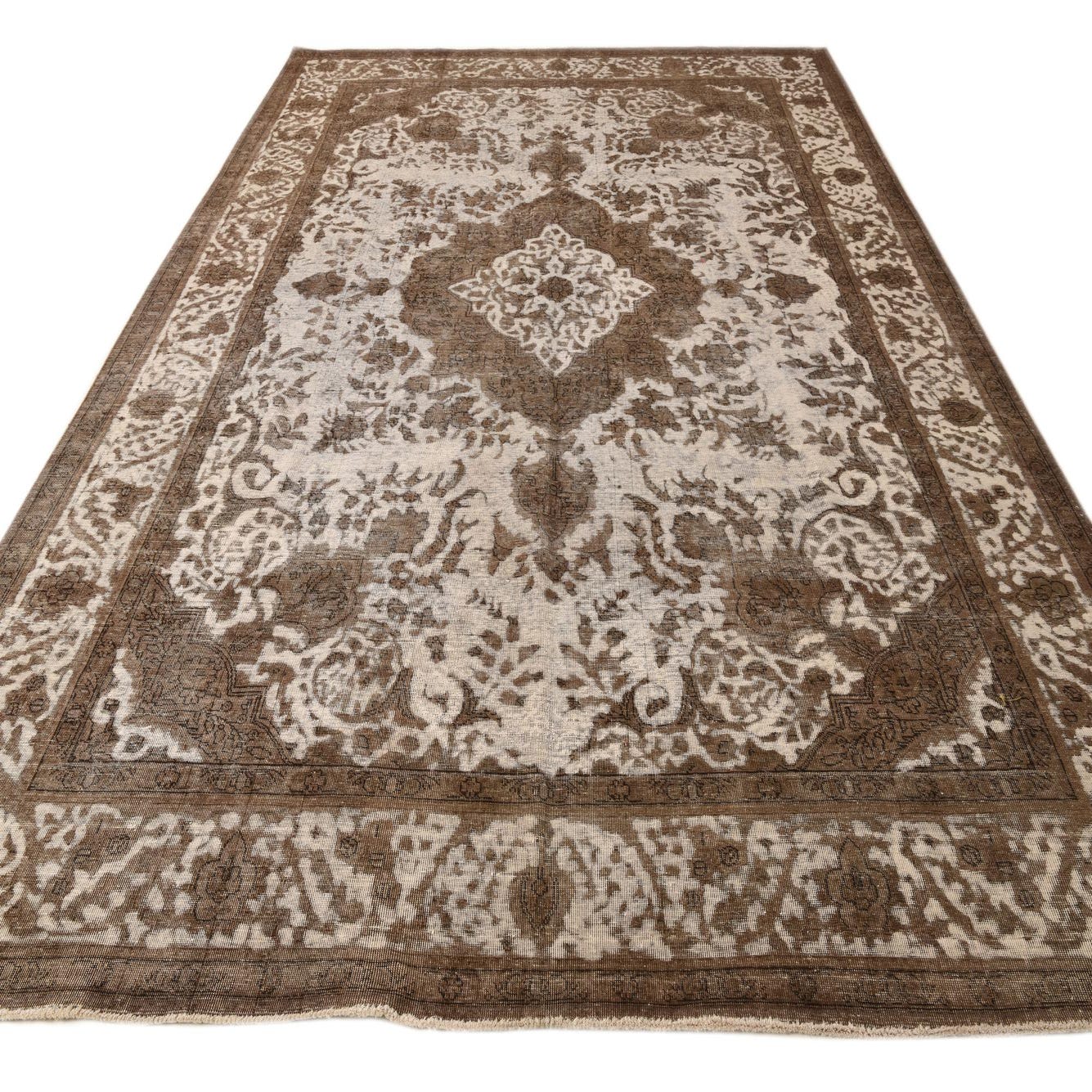 This Persian Ultra Vintage rug is an antique Persian Rug that has been washed, over-dyed, and then shaved down to a low pile. Look at the detail pictures to fully appreciate the uniqueness of this piece.