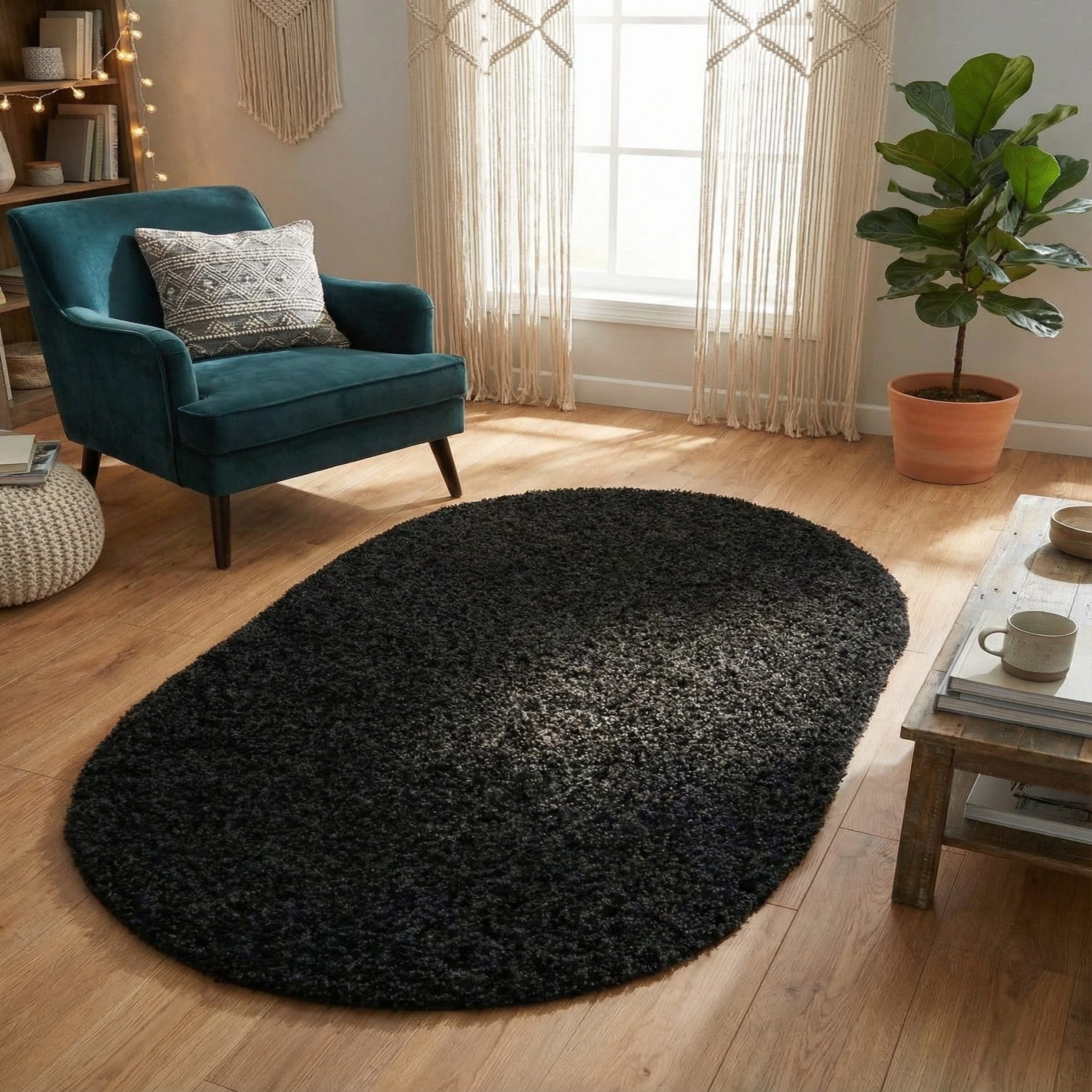 3' x 5' 3 Solid Shag Oval Rug