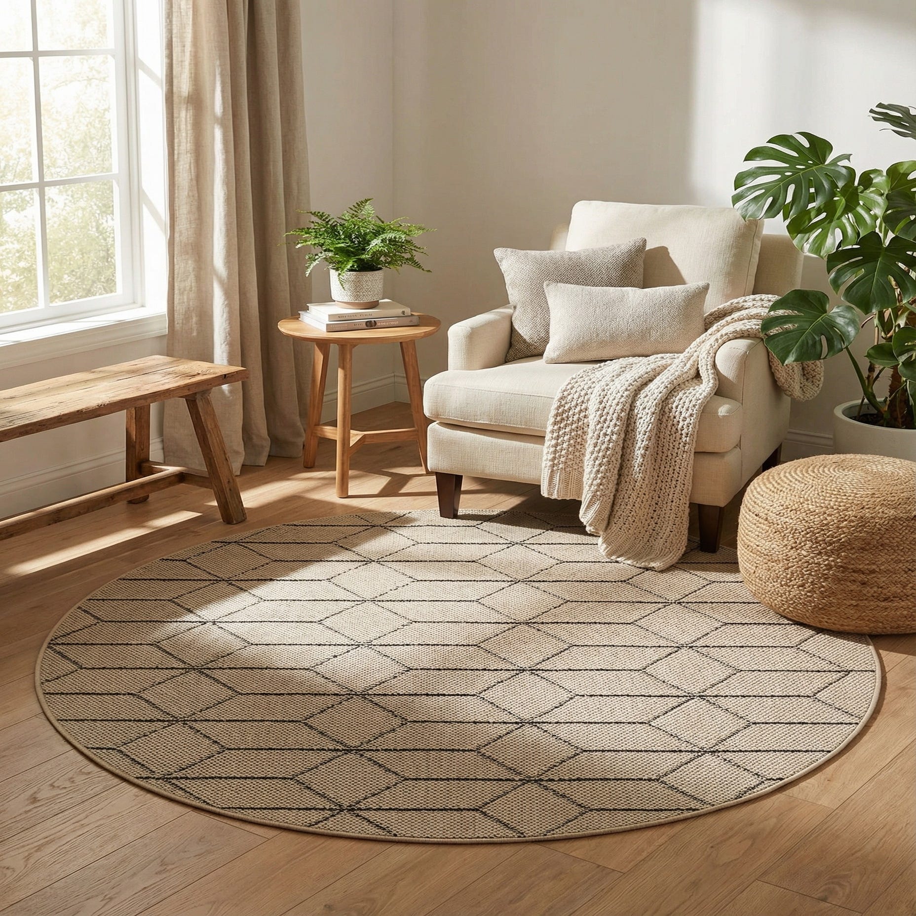 Detail image of 5' 3 x 5' 3  Washable Trellis Indoor / Outdoor Round Rug