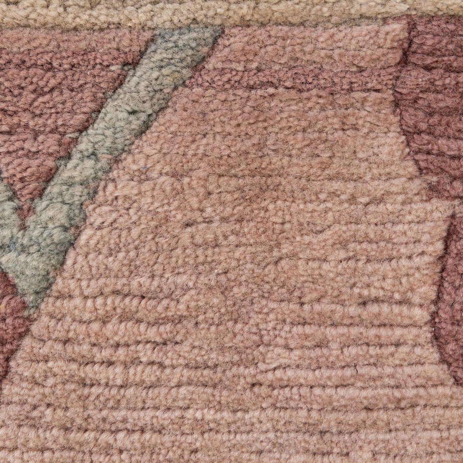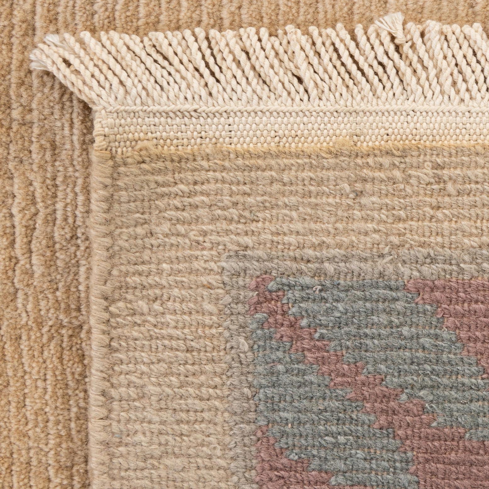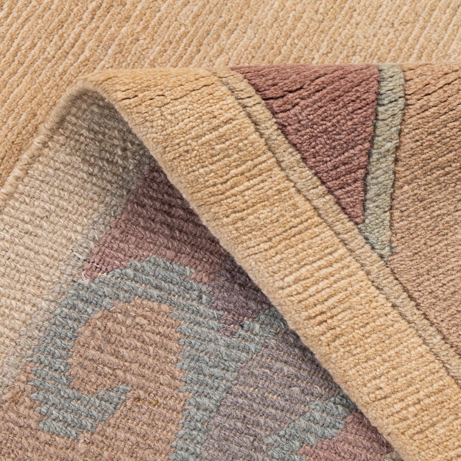 Primary color is Khaki. Colors in this rug include: Khaki, Gray, Green, Violet, Purple, Beige.