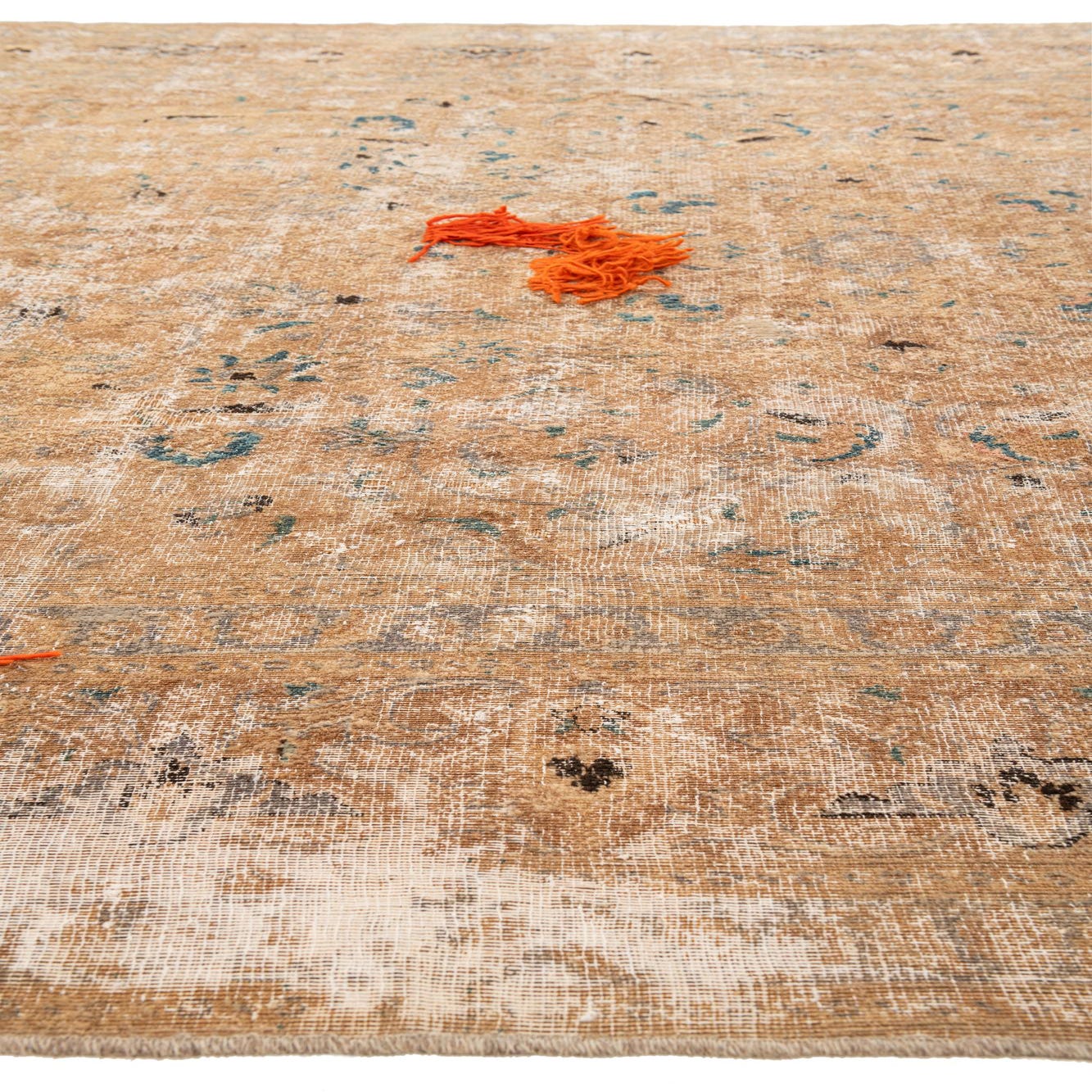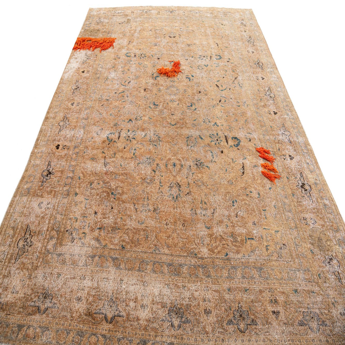 This Persian Ultra Vintage rug is an antique Persian Rug that has been washed, over-dyed, and then shaved down to a low pile. Look at the detail pictures to fully appreciate the uniqueness of this piece.