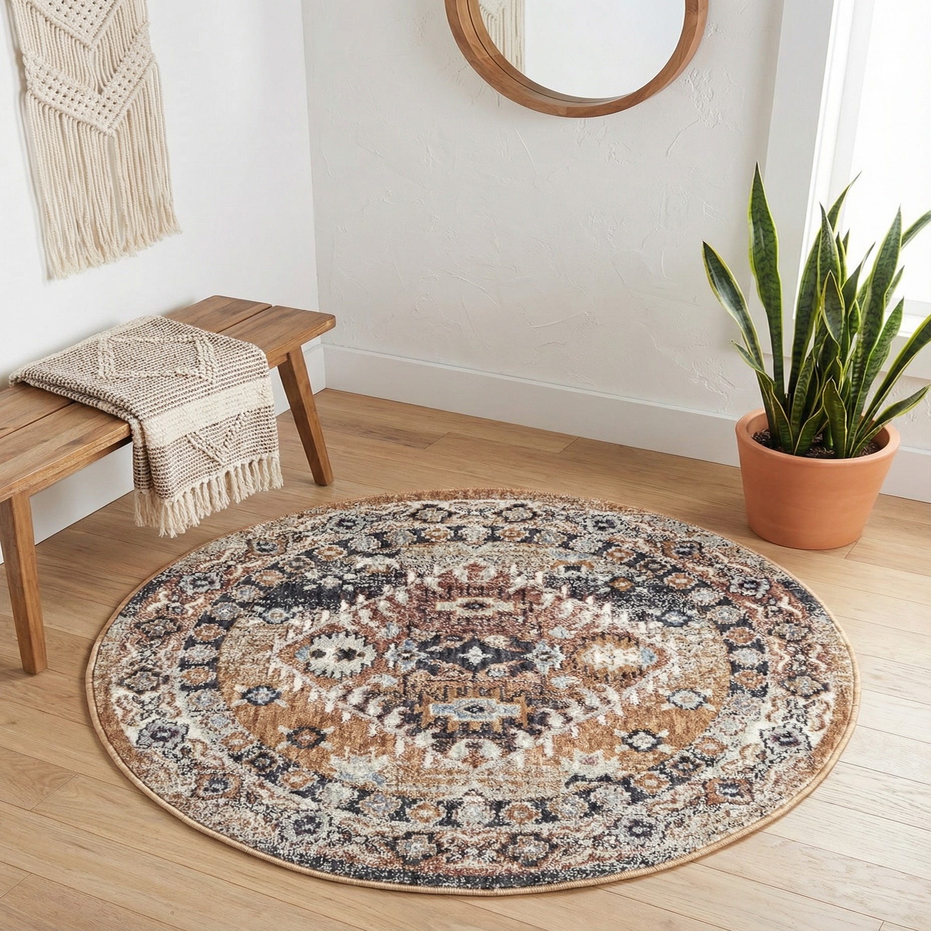 3' 3 x 3' 3 Eco Southwestern Round Rug