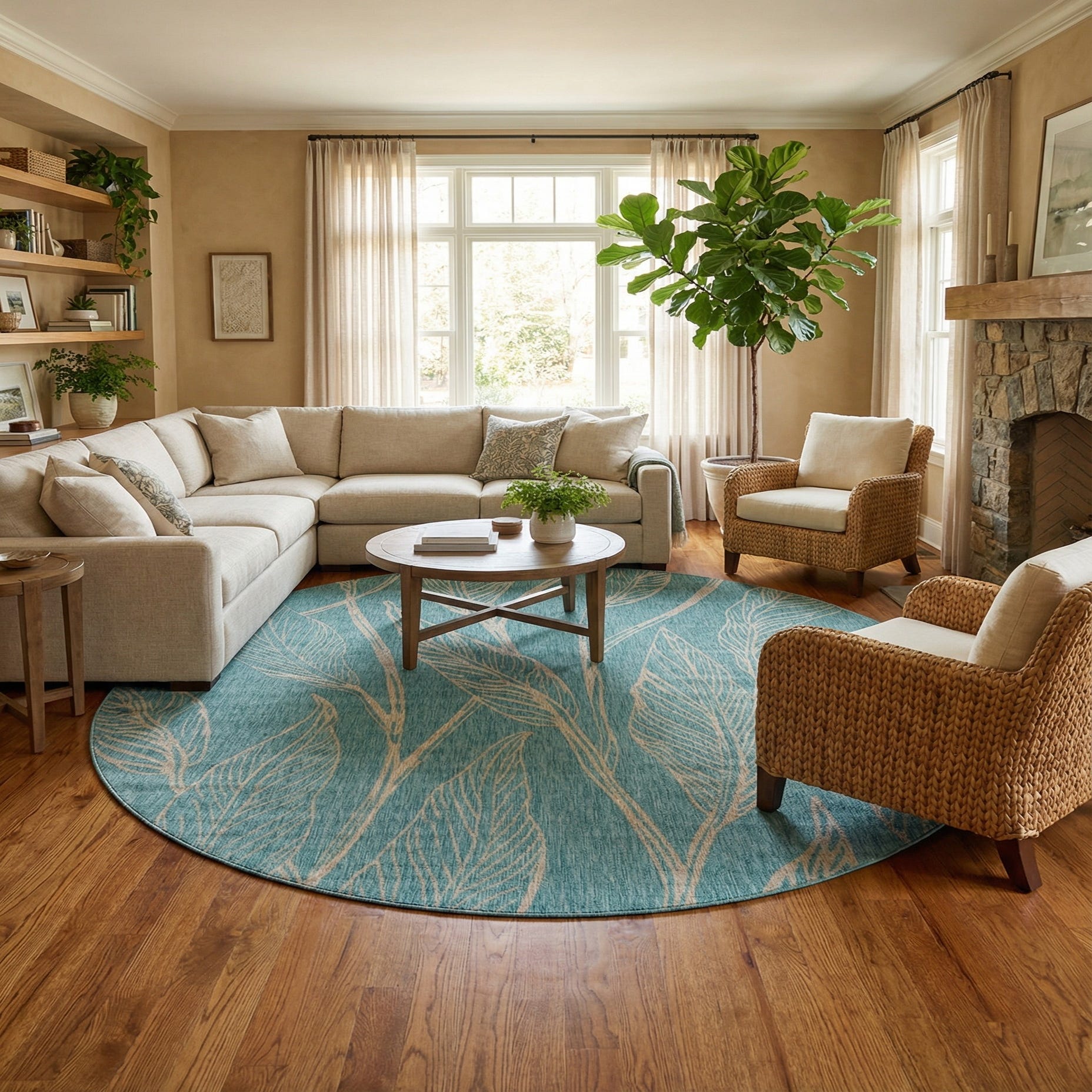 Primary image 13' x 13'  Washable Botanical Indoor / Outdoor Round Rug