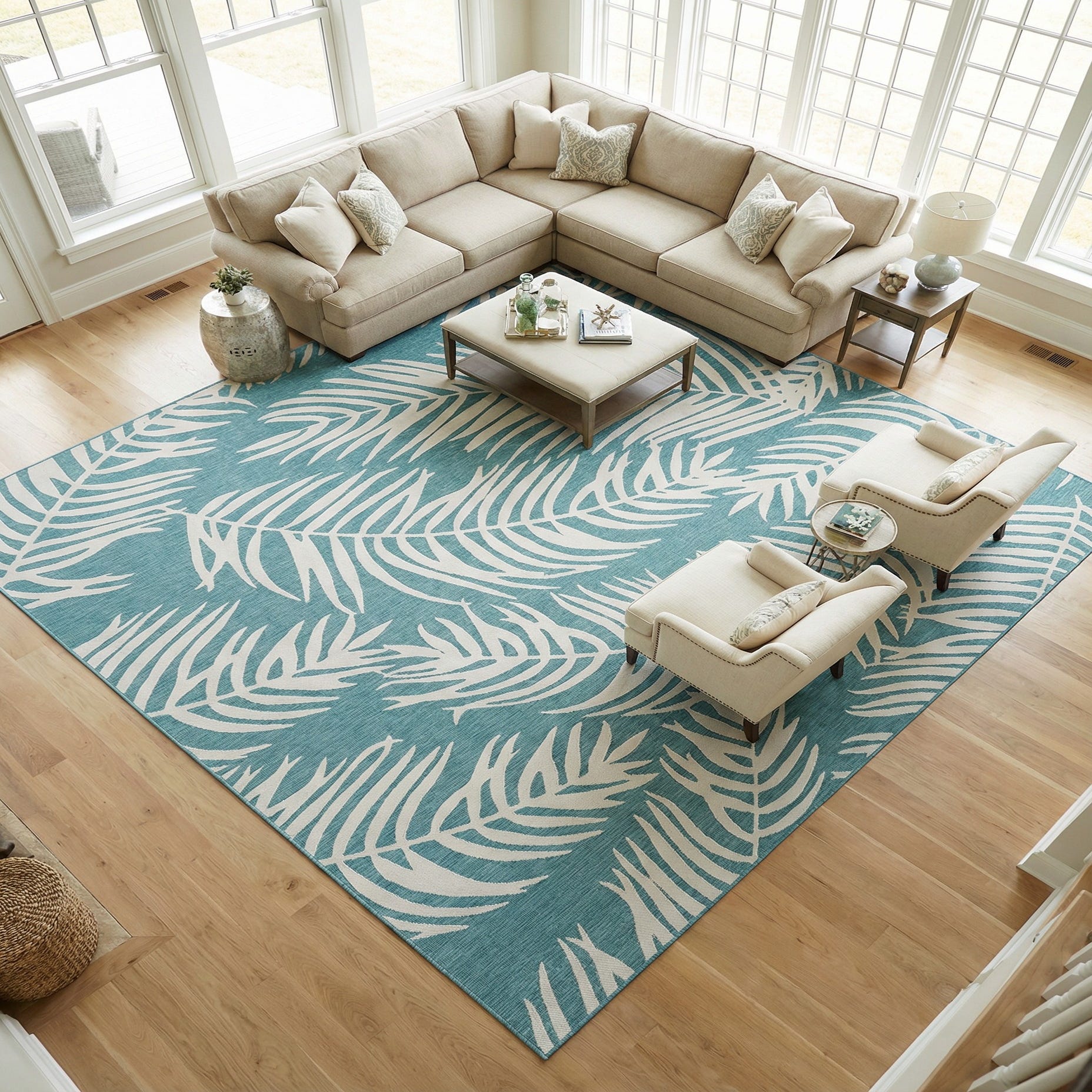 13' x 13' Washable Botanical Indoor / Outdoor Square Rug