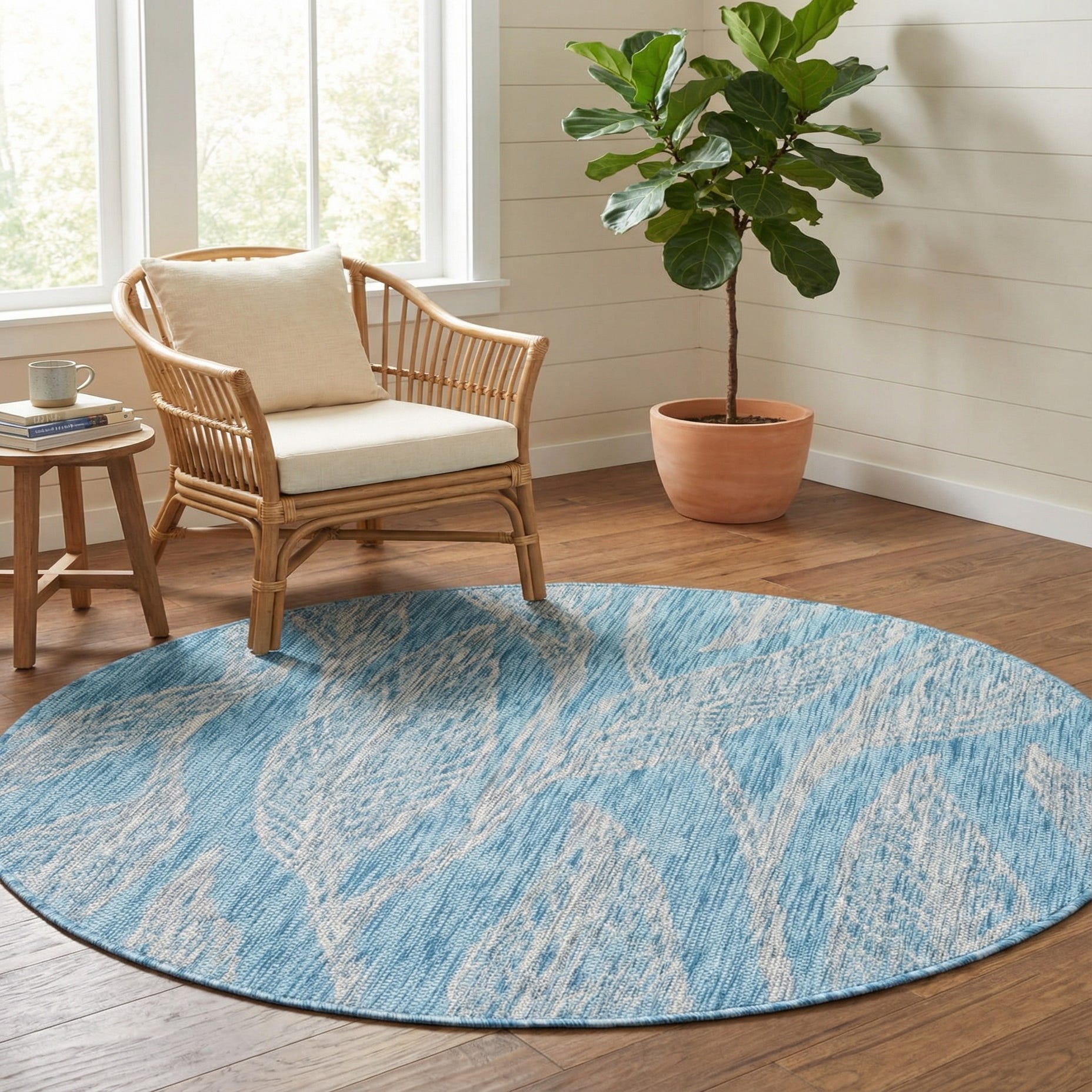 Detail image of 4' x 4'  Washable Botanical Indoor / Outdoor Round Rug