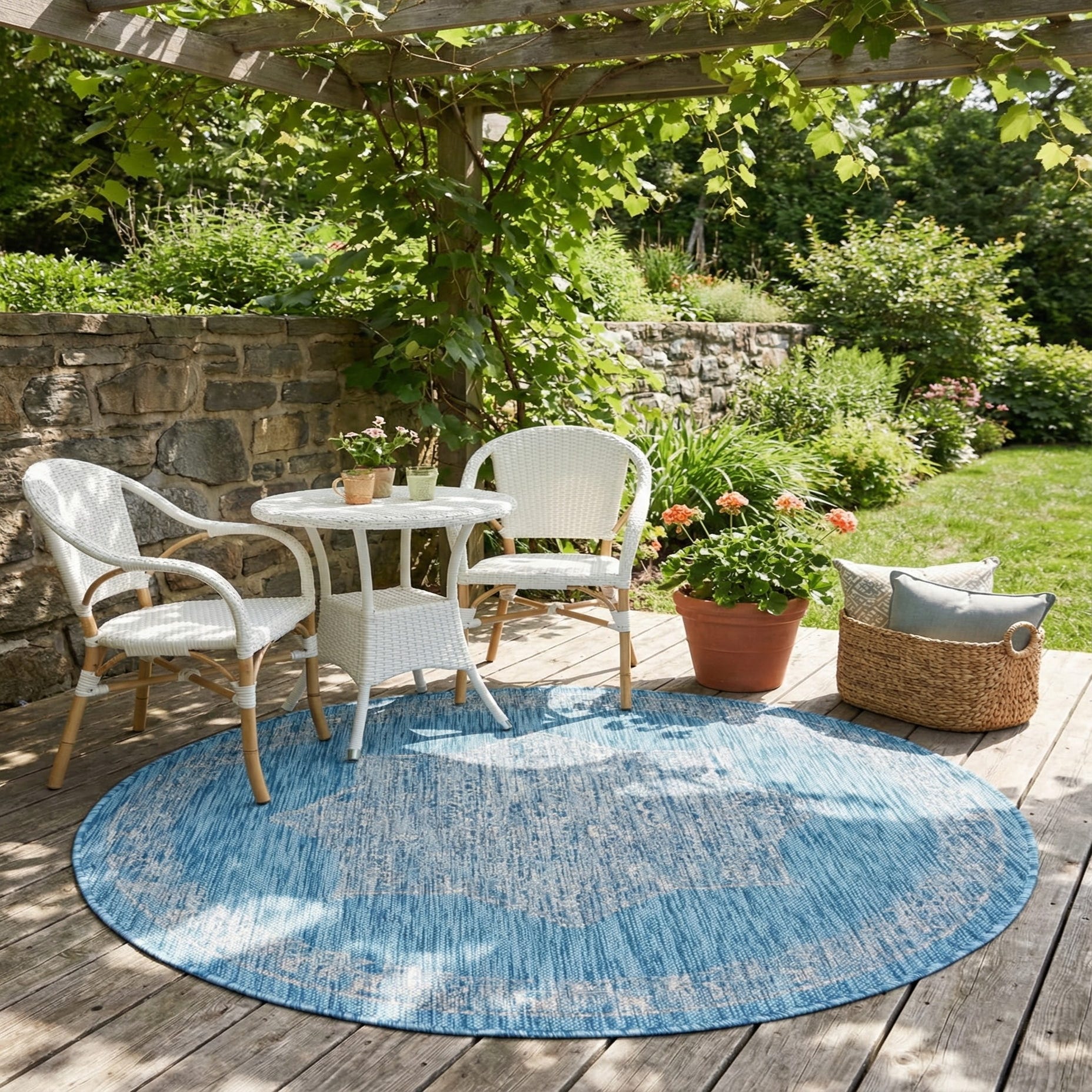 4' x 4' Washable Traditional Indoor / Outdoor Round Rug
