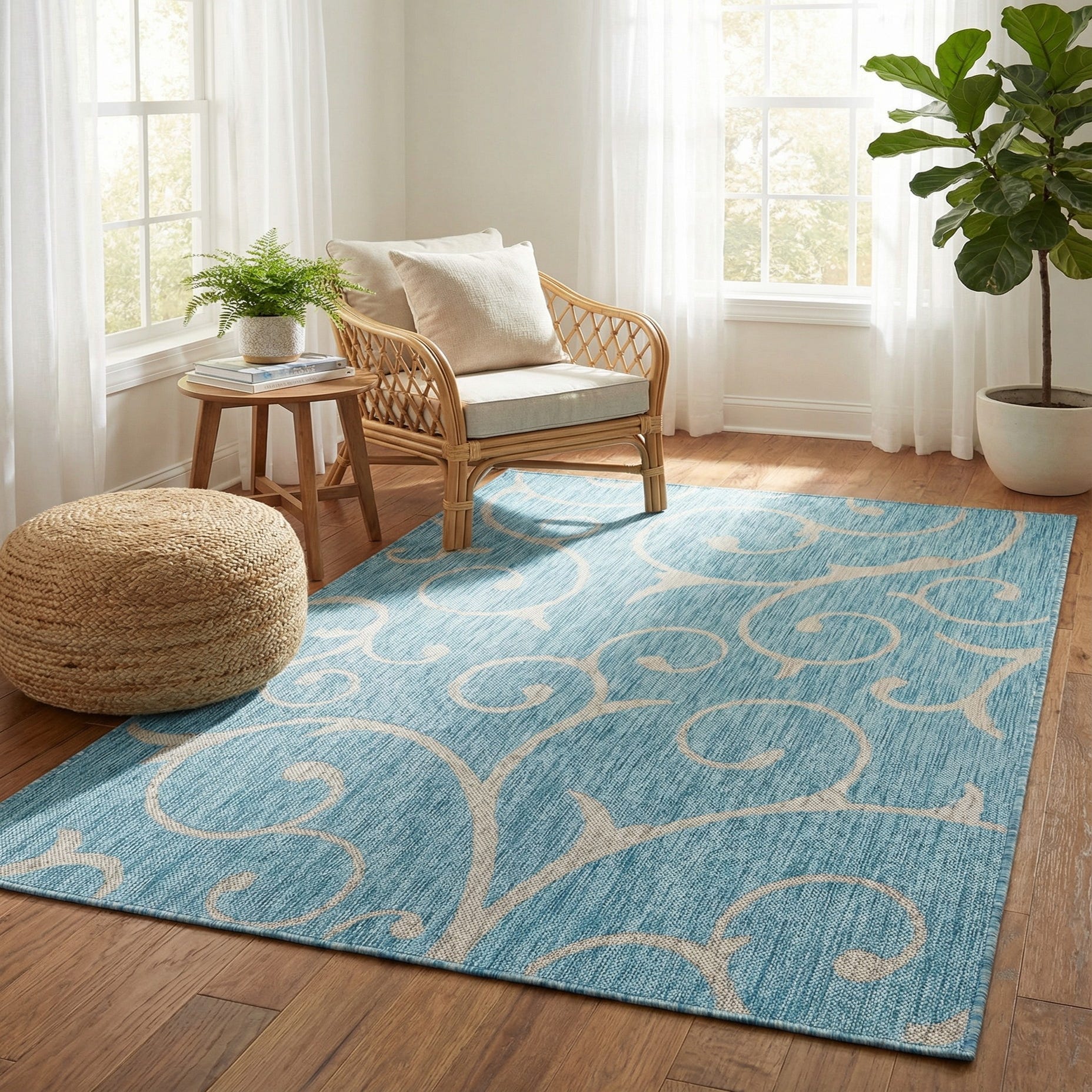 5' 3 x 8' Washable Botanical Indoor / Outdoor Rug