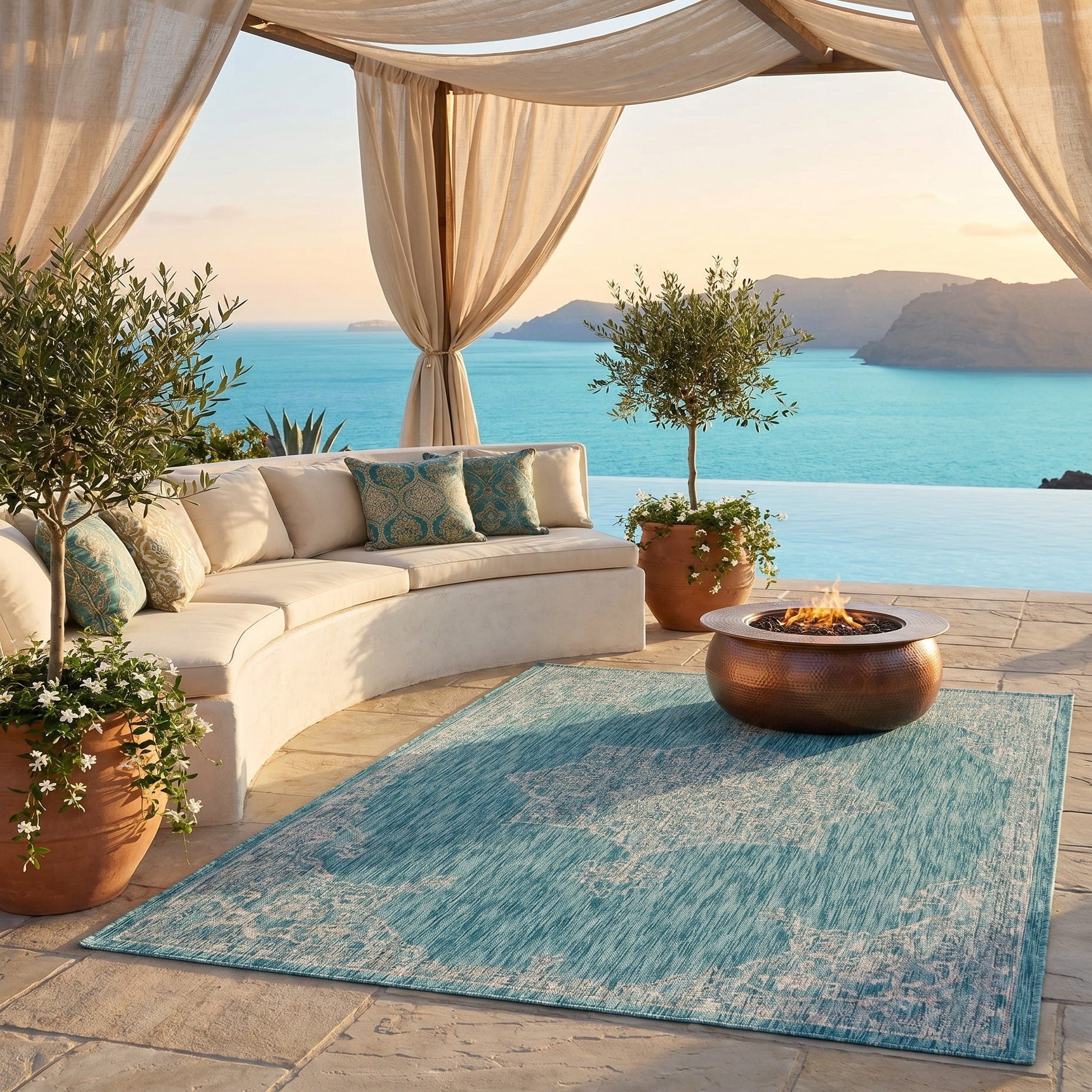 6' x 9' Easy-Clean Traditional Indoor / Outdoor Rug