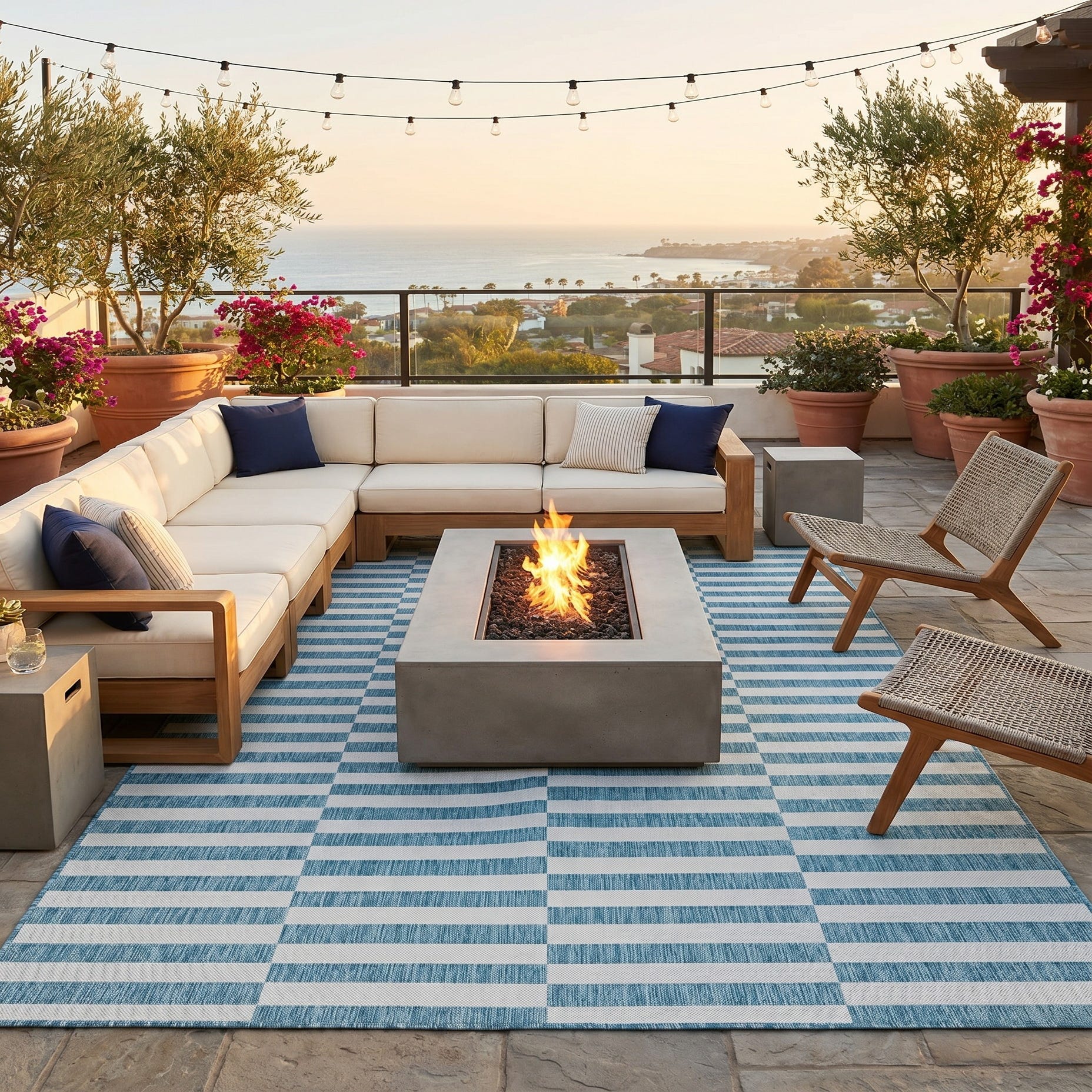 7' x 10' Easy-Clean Striped Indoor / Outdoor Rug
