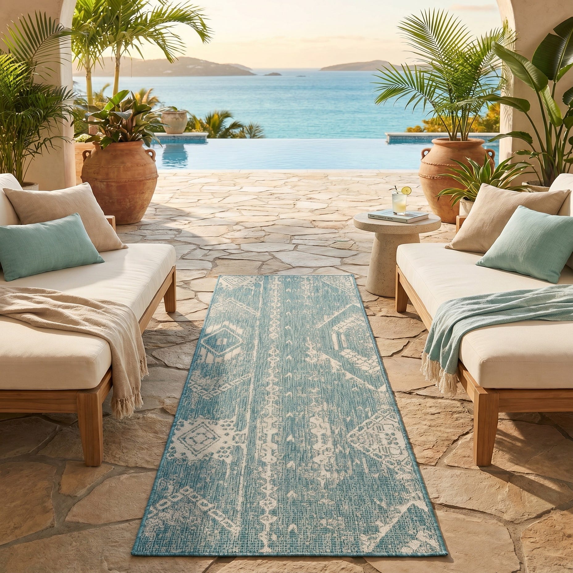 2' x 8' Easy-Clean Bohemian Indoor / Outdoor Runner Rug