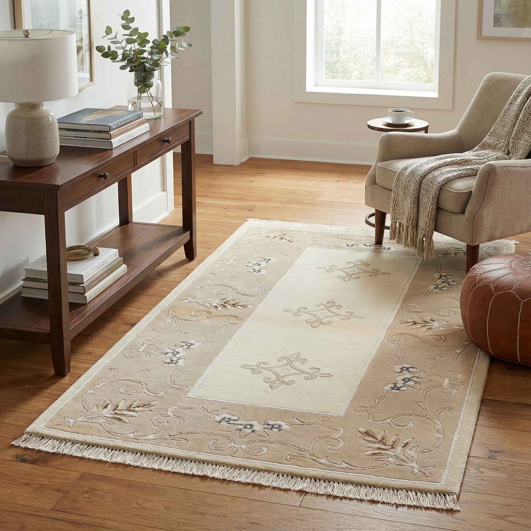Primary color is Light Beige. Colors in this rug include: Light Beige, Beige, Brown, Gray, Light Brown, Tan.
