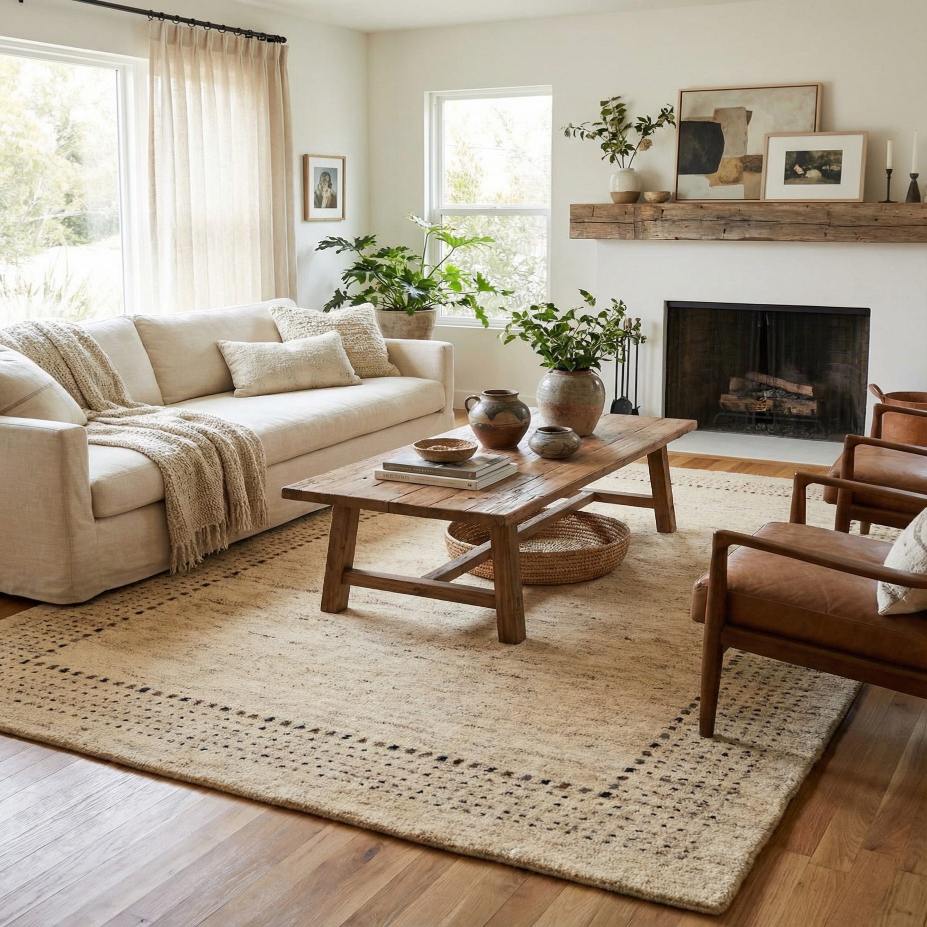 Primary color is Light Beige. Colors in this rug include: Light Beige, Brown, Black.