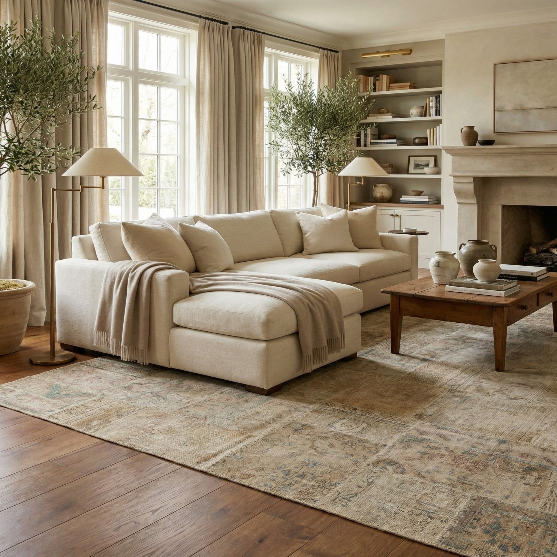 Primary color is Light Beige. Colors in this rug include: Light Beige, Ivory, Olive, Brown.
