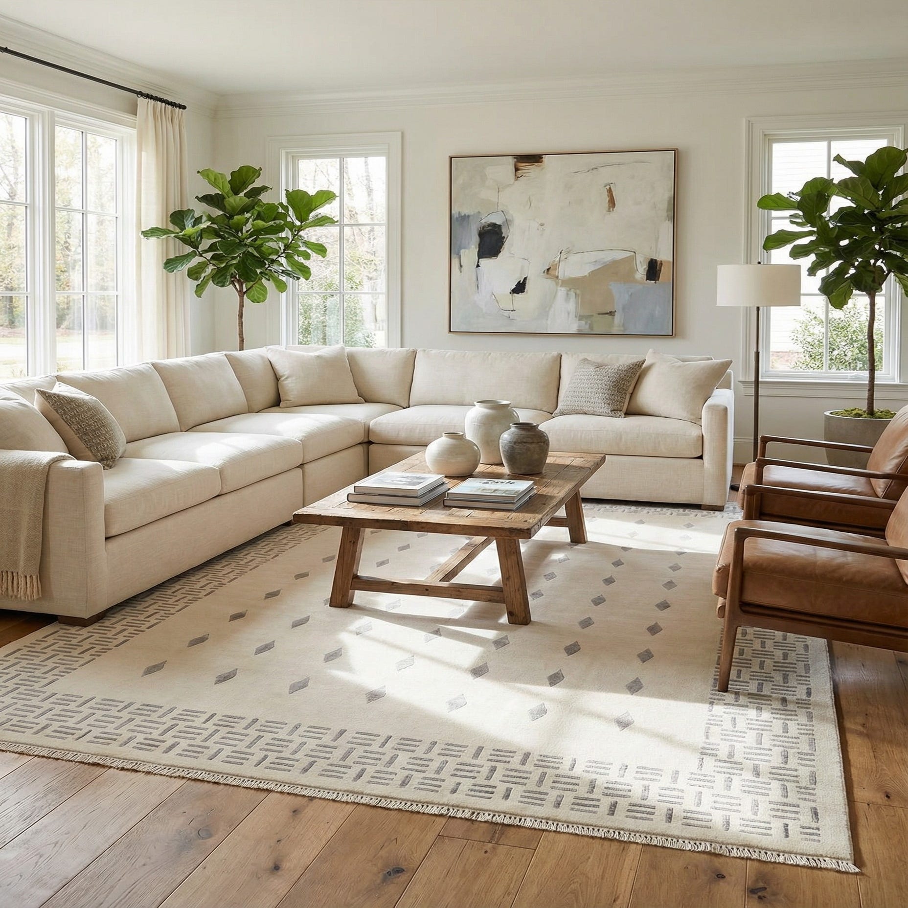 Primary color is Light Beige. Colors in this rug include: Light Beige, Gray, Silver.