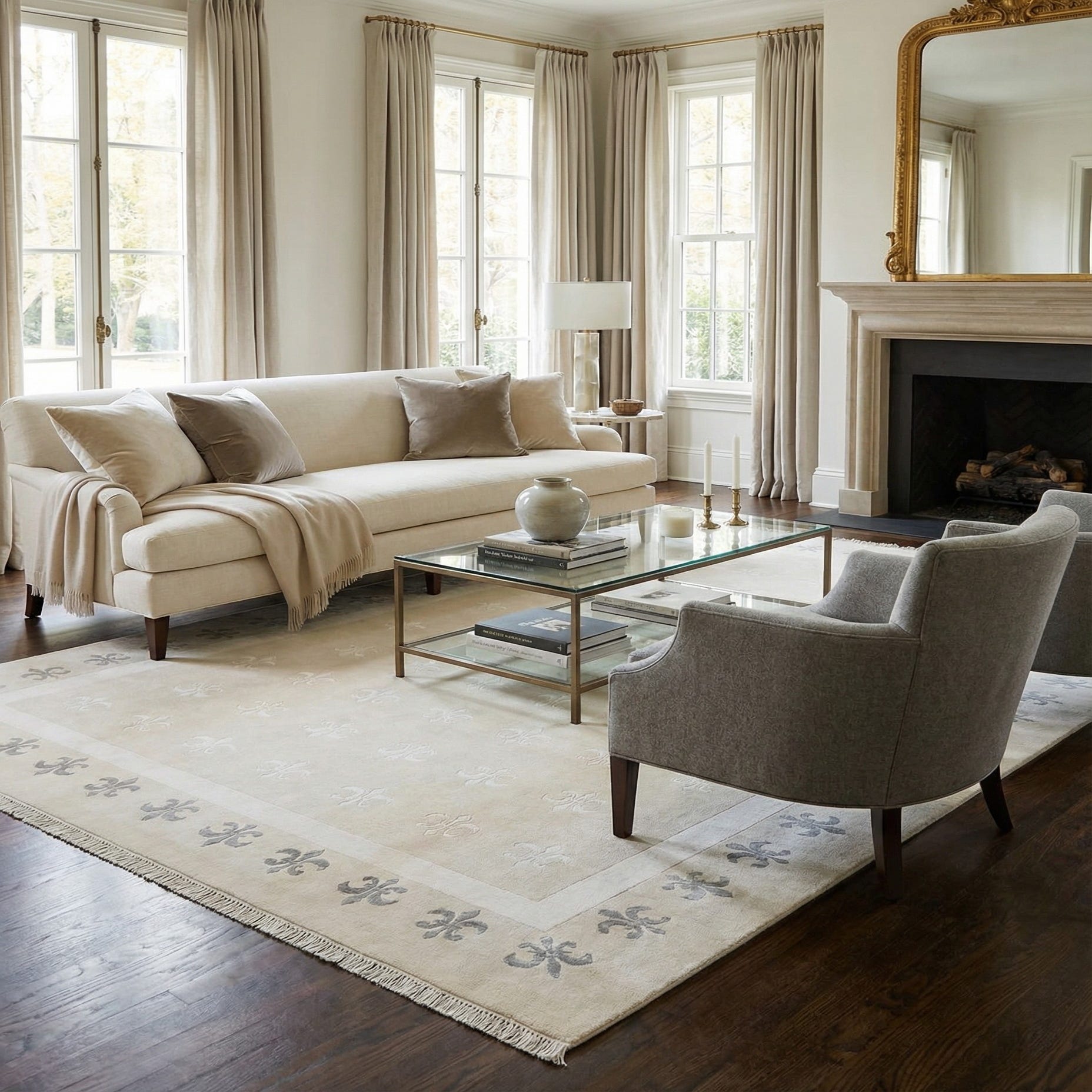 Primary color is Light Beige. Colors in this rug include: Light Beige, Gray, Ivory.