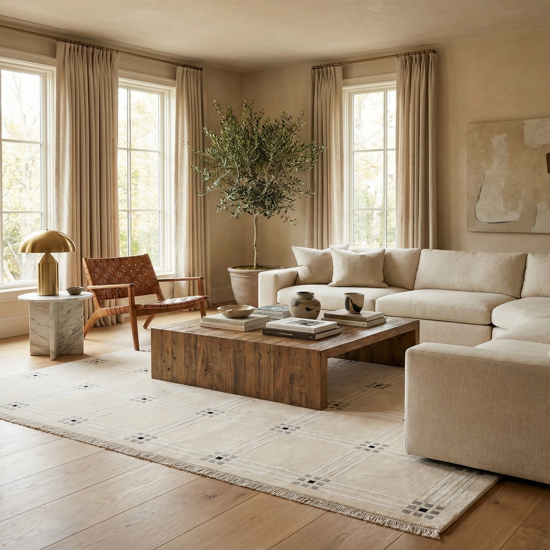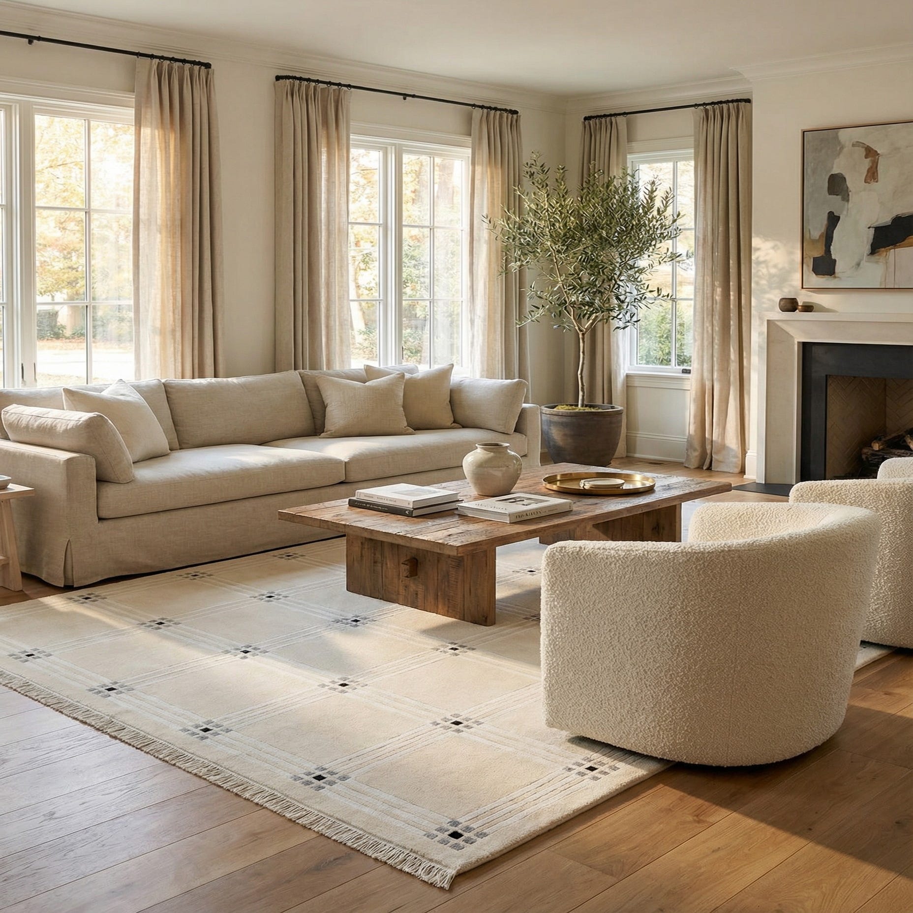 Primary color is Light Beige. Colors in this rug include: Light Beige, Beige, Black, Cream, Gray.