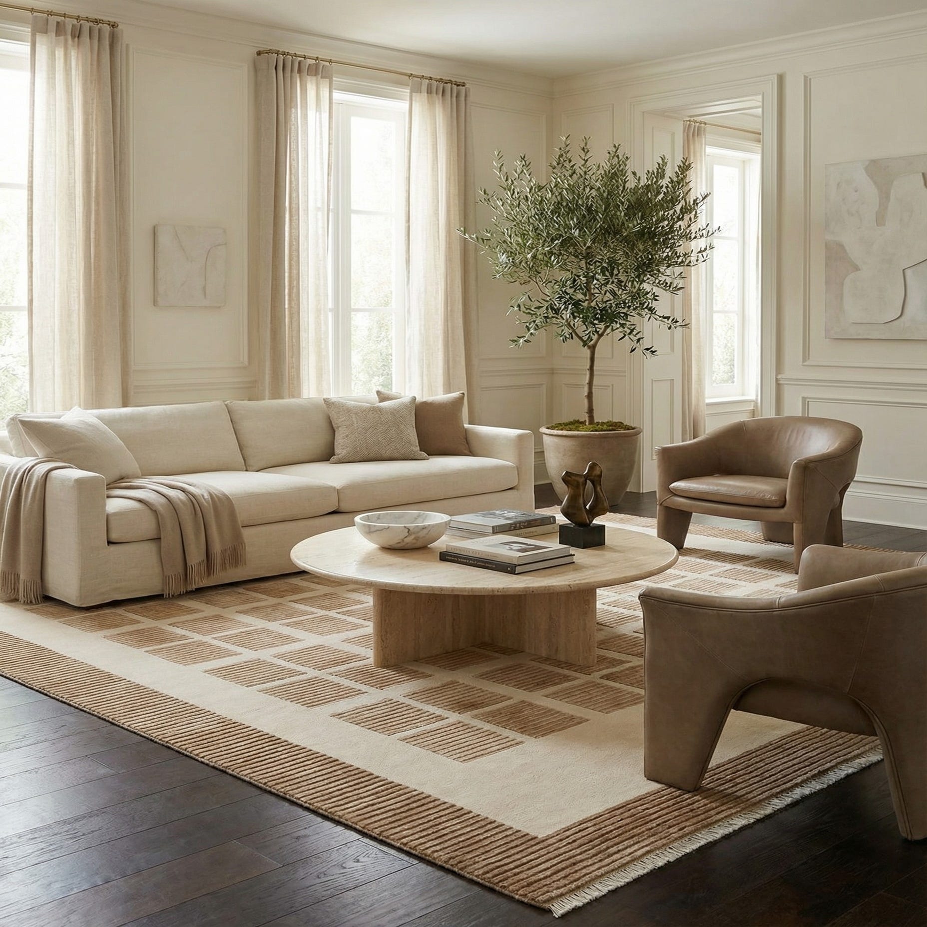 Primary color is Light Beige. Colors in this rug include: Light Beige, Beige, Brown, Light Brown.