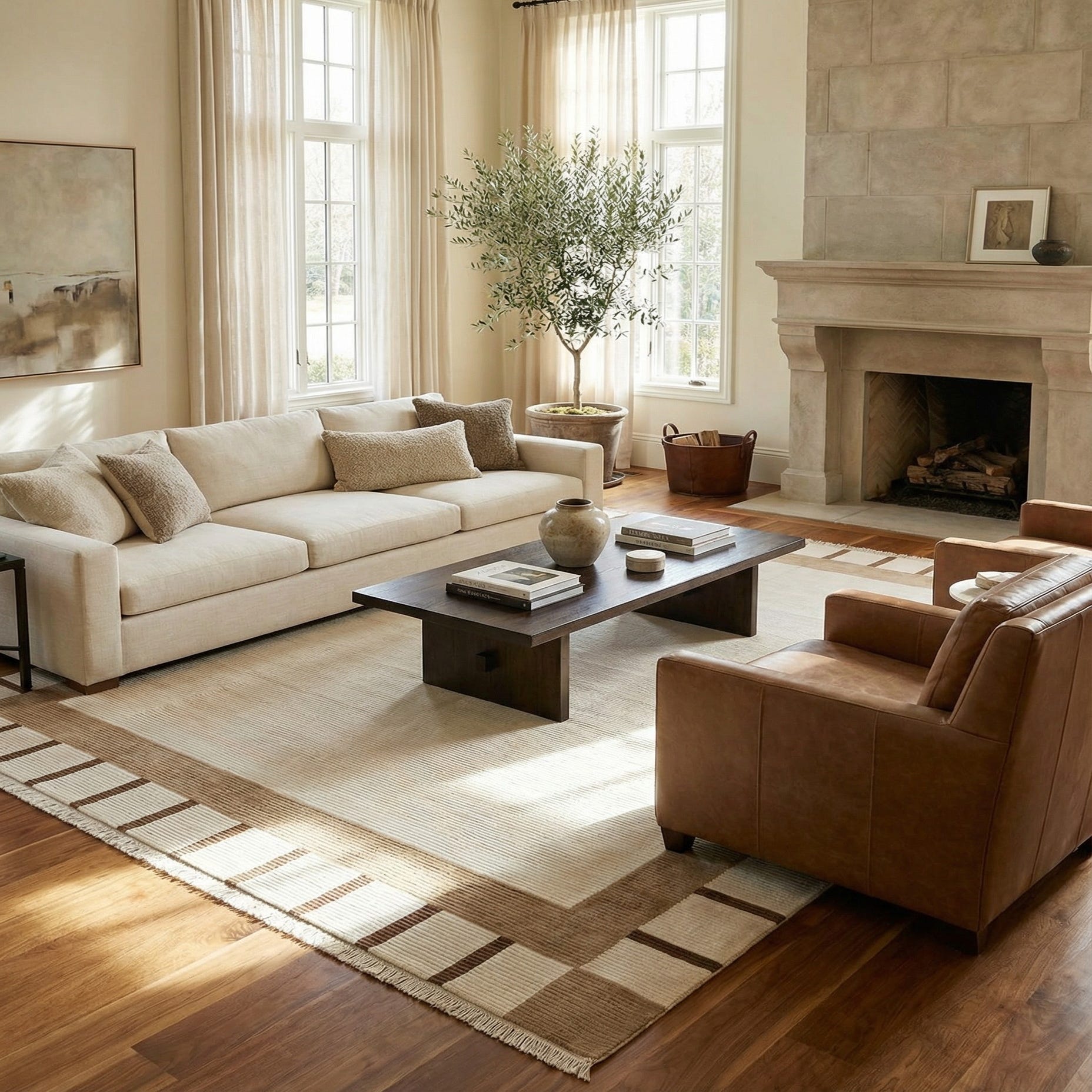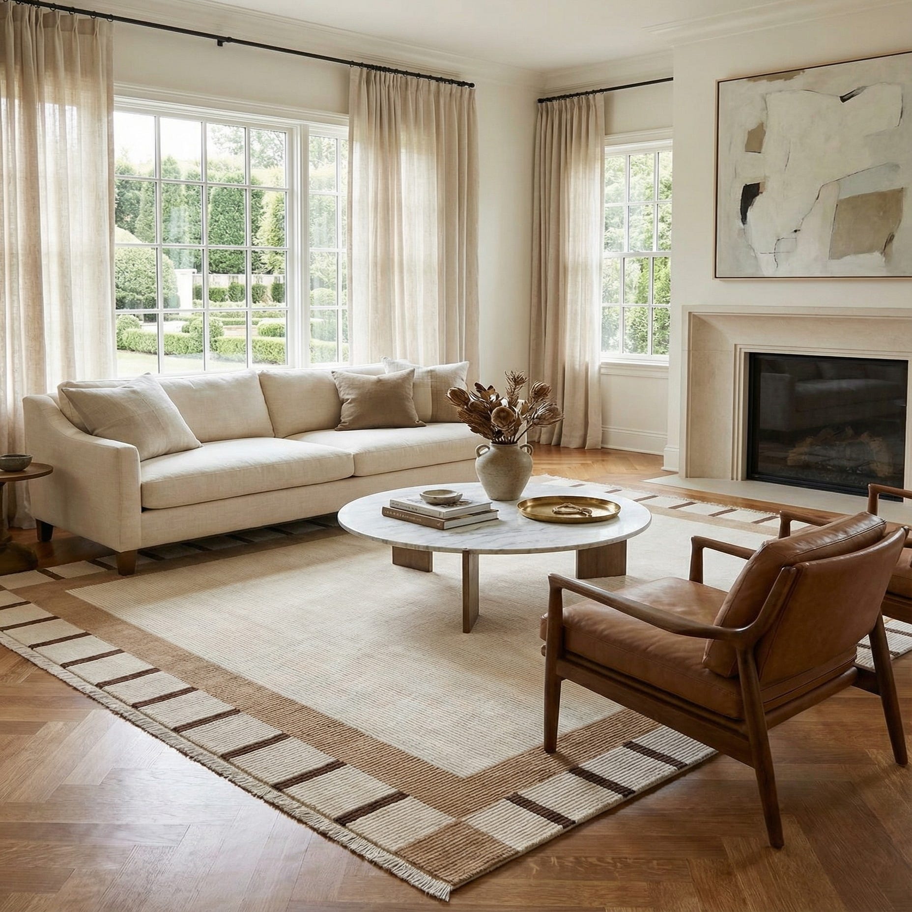 Primary color is Light Beige. Colors in this rug include: Light Beige, Brown, Ivory, Light Brown.