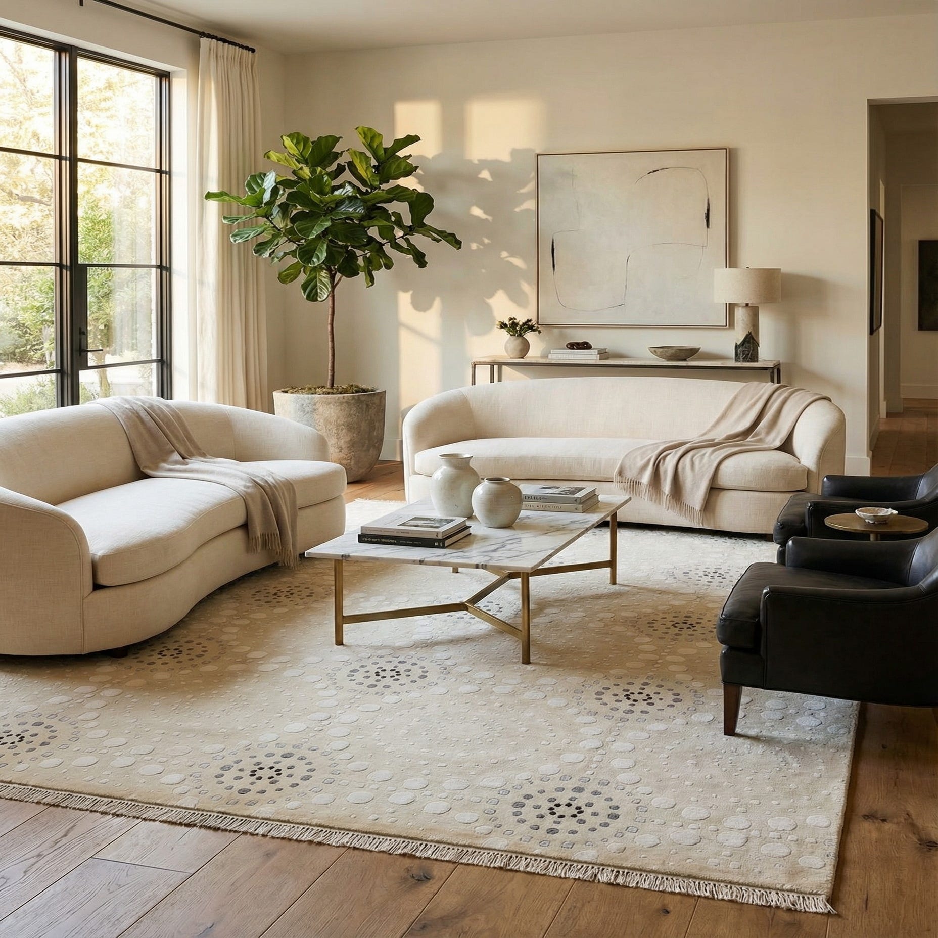 Primary color is Light Beige. Colors in this rug include: Light Beige, Beige, Black, Ivory, Silver, Cream.