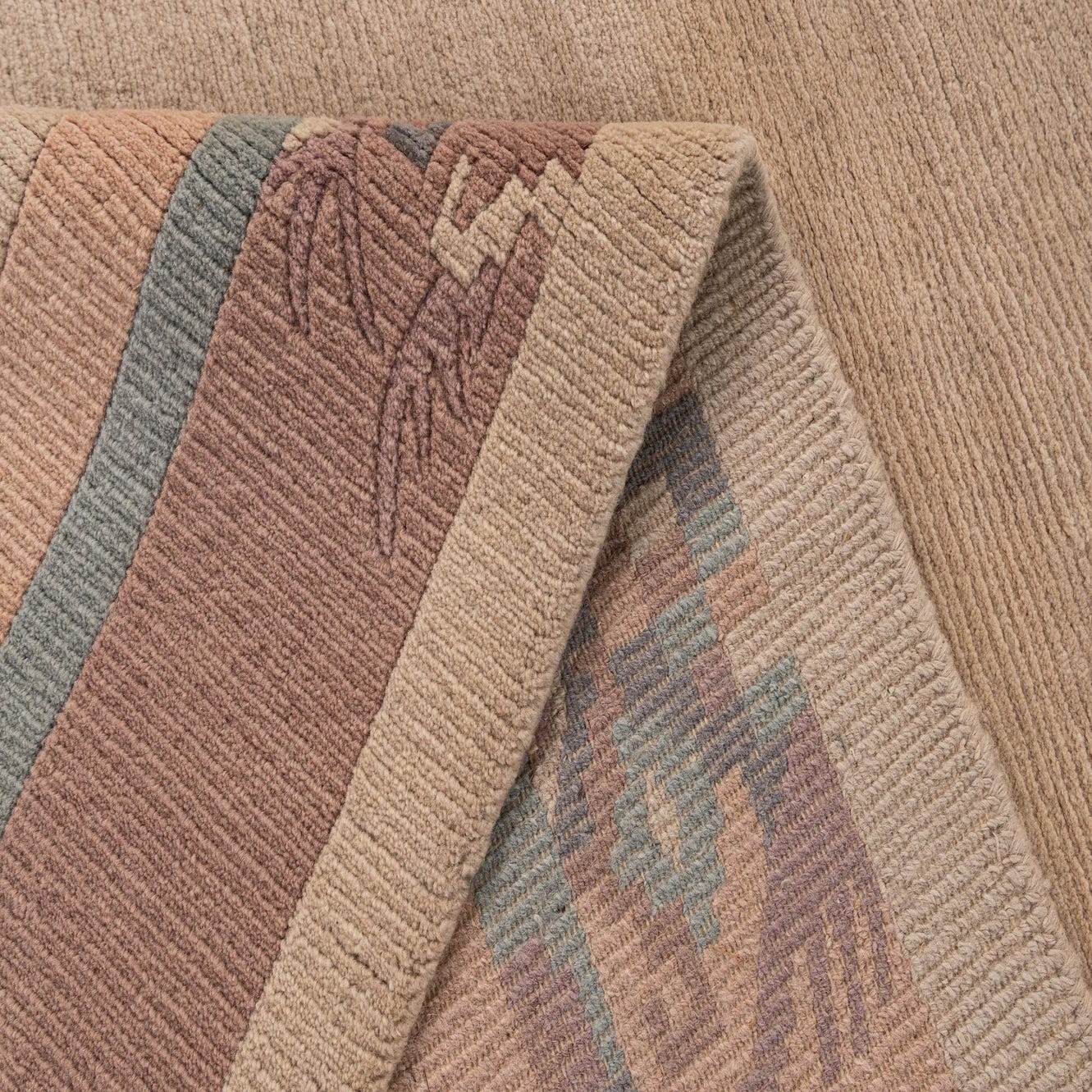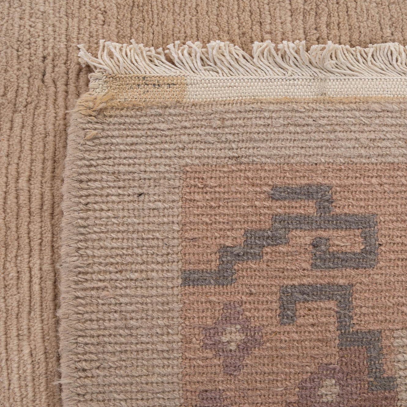 Primary color is Light Beige. Colors in this rug include: Light Beige, Gray, Pink, Violet, Brown.